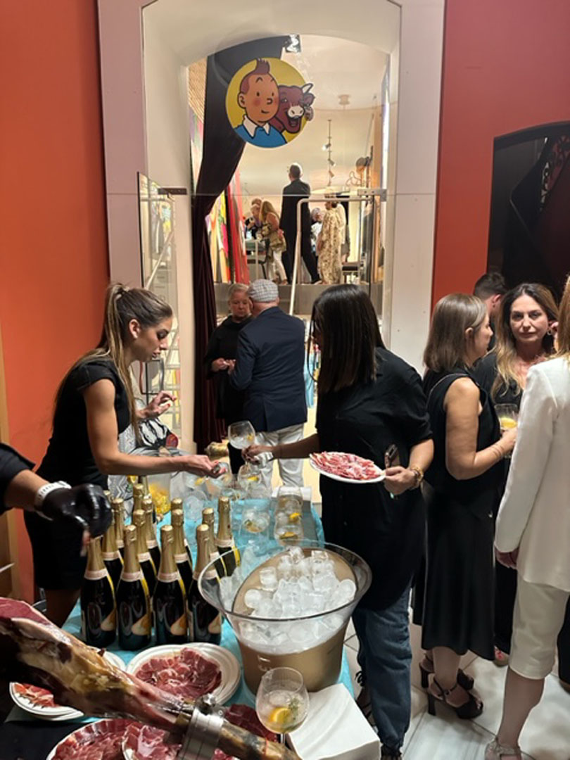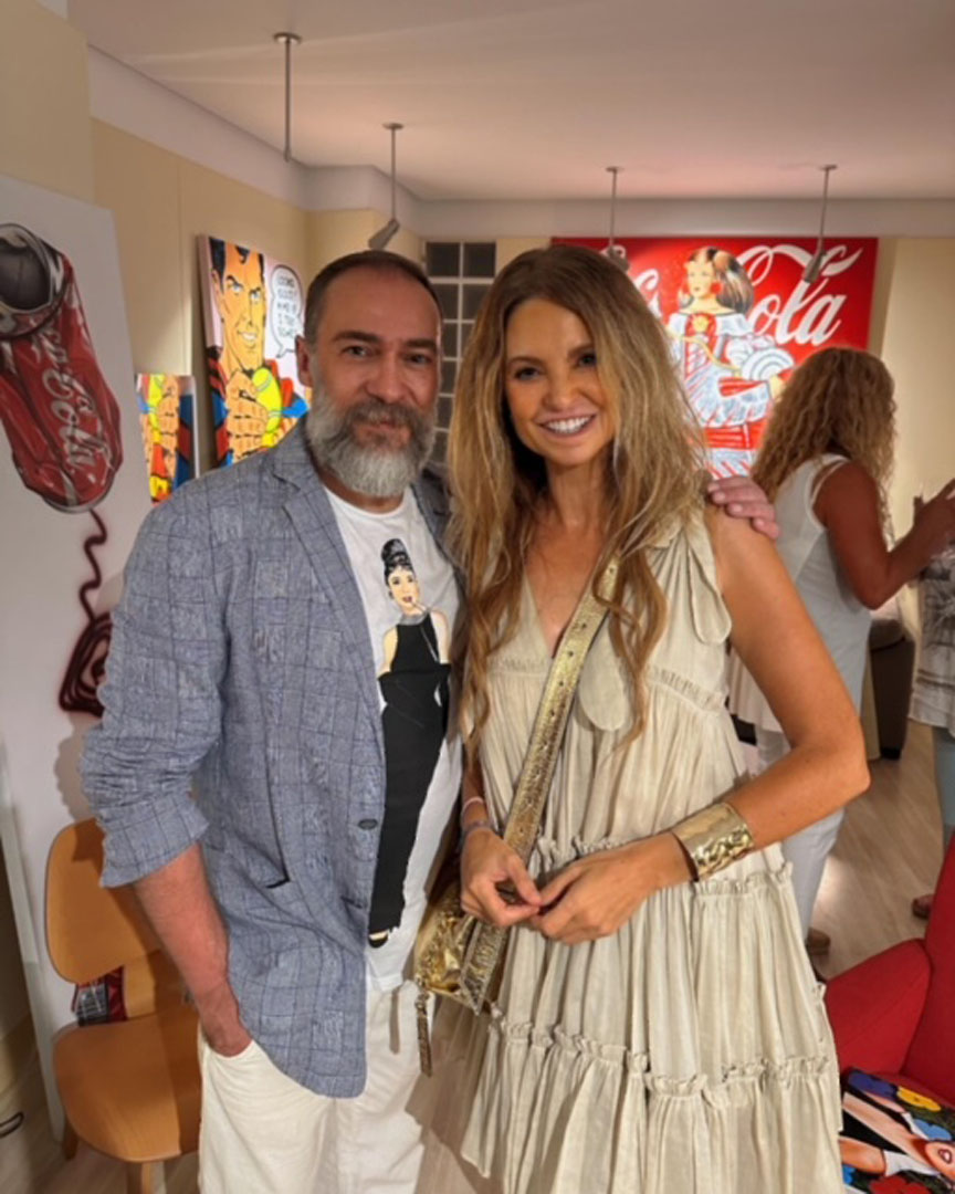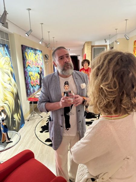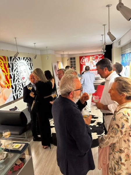 Numerosos rostros conocidos de la sociedad valenciana se dieron cita para disfrutar de la compañía del pintor y de su obra warholiana, alegre y colorida.