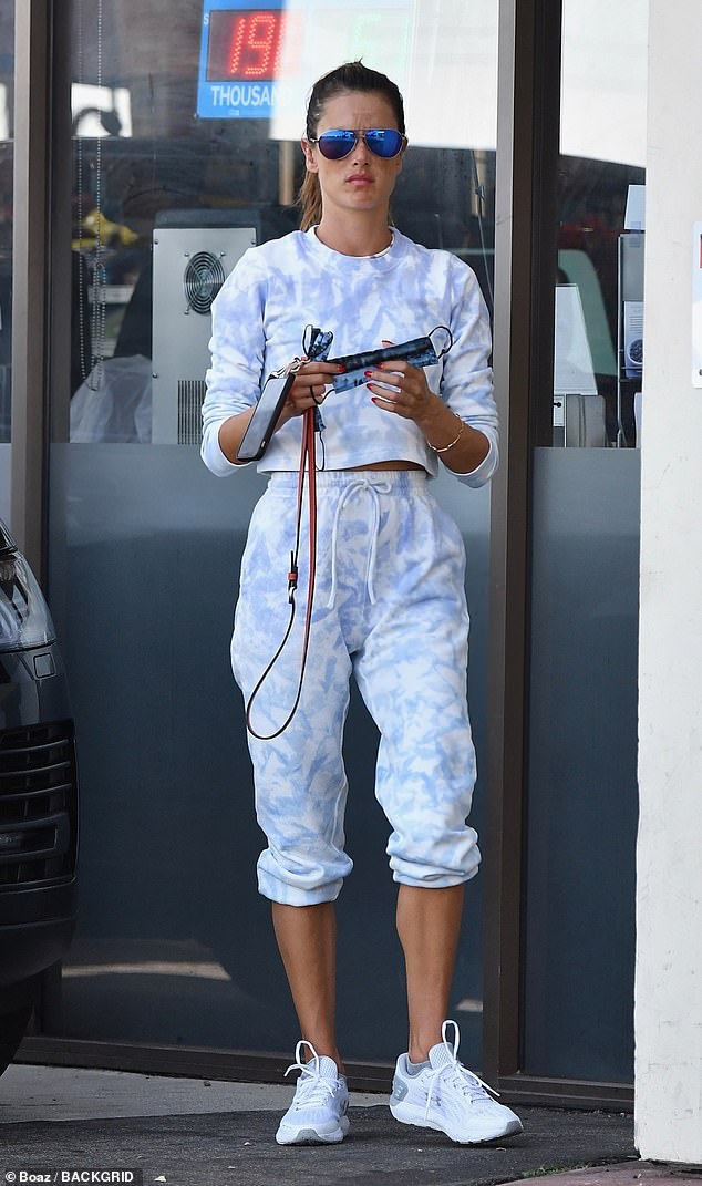Alessandra Ambrosio keeps it casual in tie-dye sweatpants and crop top during an errand run in LA | Daily Mail Online
