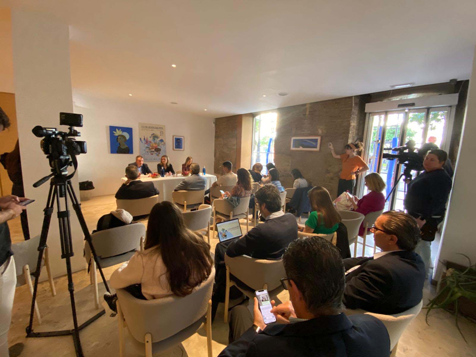 La concejala de Turismo, Innovación e Inversiones, Paula Llobet; el director de València Turisme, Xavi Pascual; y la jefa del Área de Promoción y Marketing de Turisme CV, Carmen Sahuquillo; junto con el director de Visit València, Tono Franco; entidades organizadoras del festival, han presentado las novedades de esta edición, entre las que destaca el Premio al Menú Más Verde.