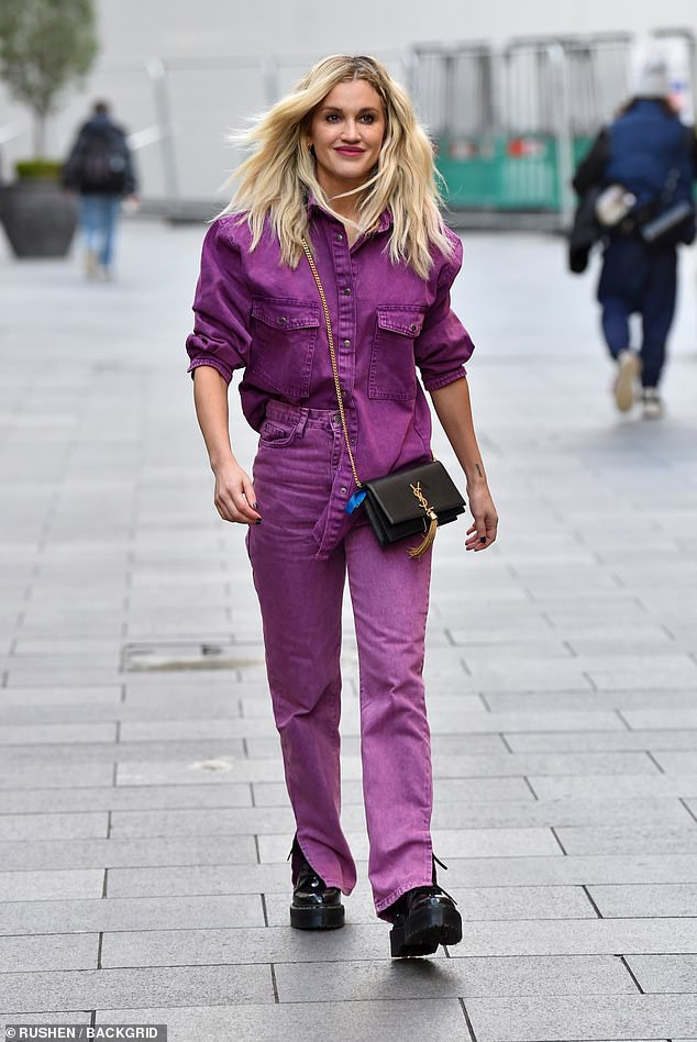 Ashley Roberts cuts a striking figure in a purple denim shirt and jeans as she leaves Heart FM | Daily Mail Online