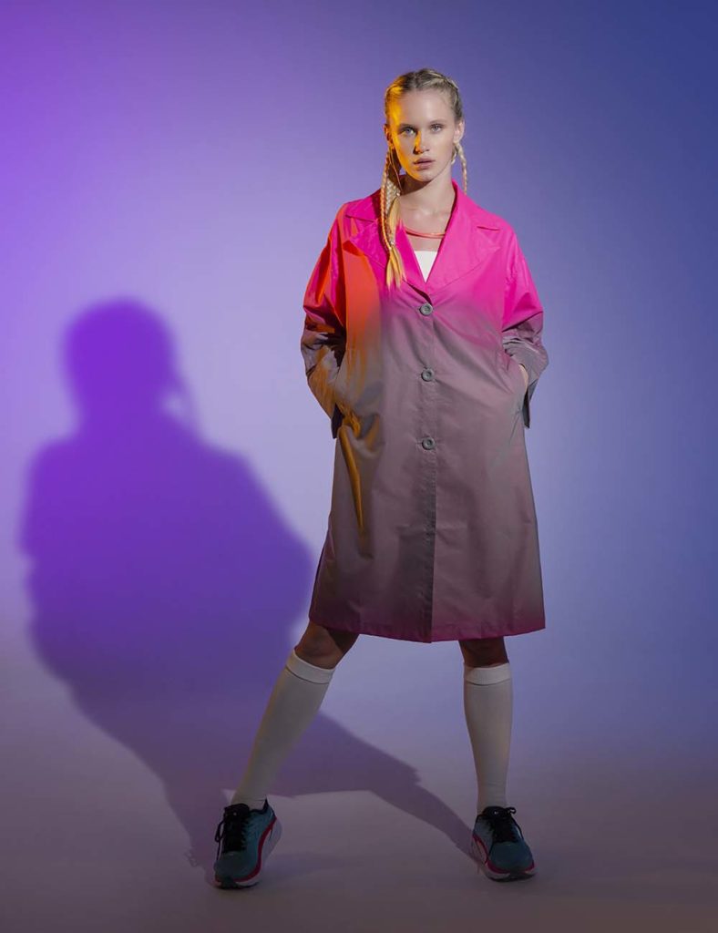 Reinterpretación de la gabardina en degradé cromático.