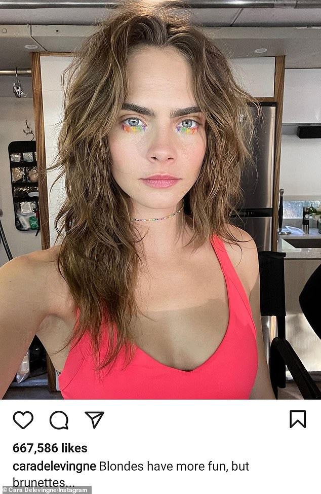 Cara Delevingne unveils new brunette hair after making a departure from her signature blonde locks | Daily Mail Online