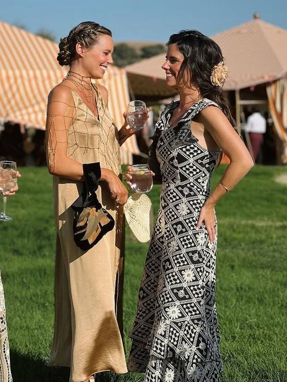 Claudia Osborne y Blanca Astolfi, dos amigas, dos looks de invitada: de un vestido boho con original estampado a un conjunto 'arty'