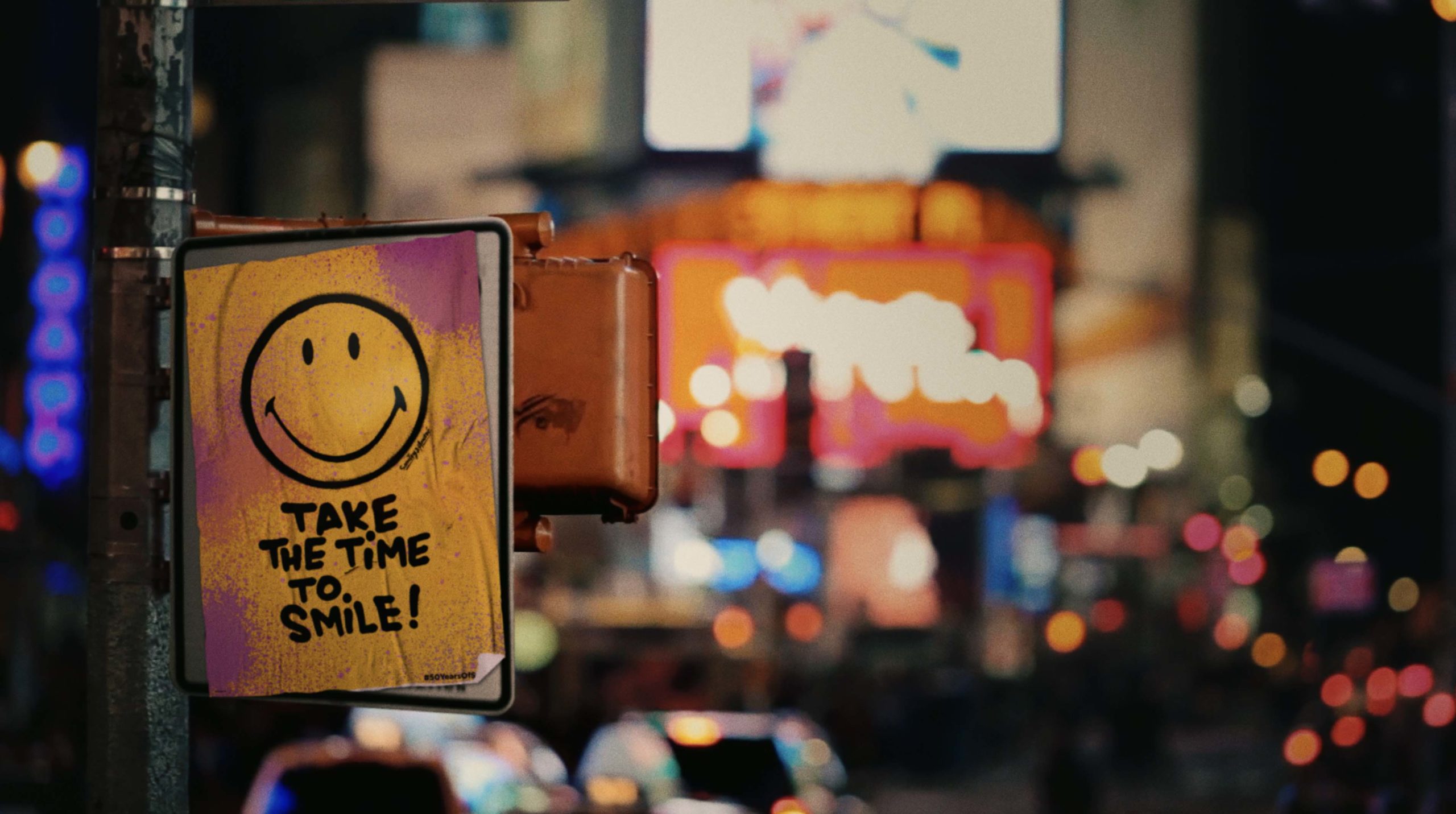 Con un vídeo musical en el que aparece la mundialmente conocida iconografía del optimismo de Smiley y la campaña global de arte callejero del aniversario, realizada por el maestro del grafiti André Saraiva (que también hace un cameo), el vídeo cuenta con la aparición del instagramer «@DudewithSign«, cuyo irónico sentido del humor escrito seguro que arrancará una sonrisa a todo aquel que lo vea.