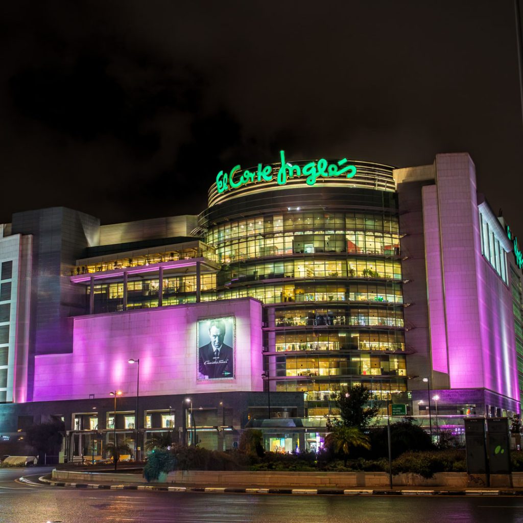 En total son 23 fachadas de centros de El Corte Inglés a nivel nacional las que se iluminan de color rosa durante este mes, destacando los edificios de Castellana, Goya, Preciados, Princesa y Serrano (Madrid), Diagonal (Barcelona), Bilbao, A Coruña, Ronda de los Tejares (Córdoba), Las Palmas, León, Málaga, Murcia, Nervión (Sevilla), Avenidas (Palma de Mallorca), Avenida de Francia (Valencia), Tres de Mayo (Santa Cruz de Tenerife), Uría (Oviedo), Paseo de Zorrilla (Valladolid), Vigo, Sagasta (Zaragoza), así como en Lisboa y Oporto (Portugal).