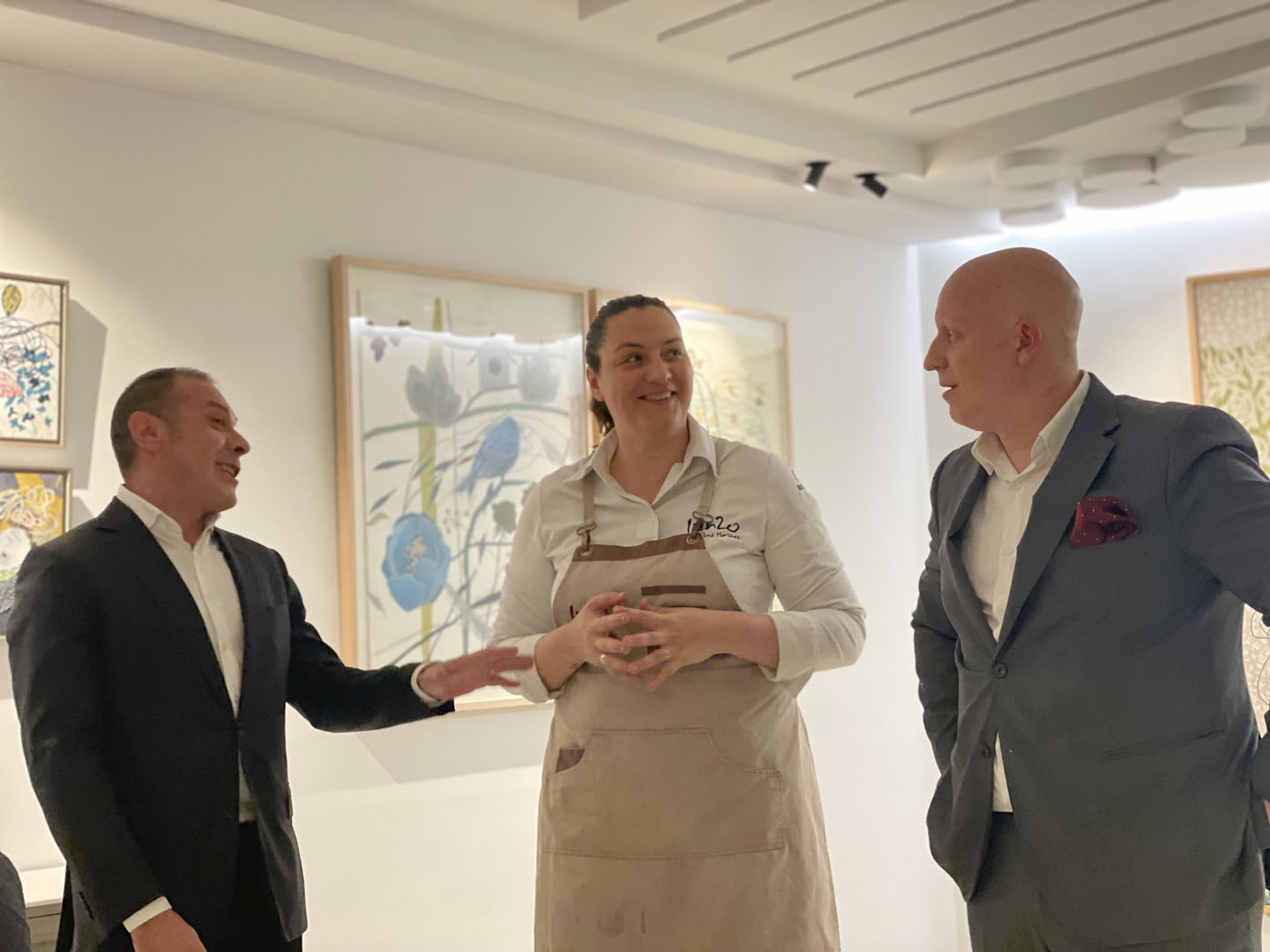 El restaurante Lienzo, regentado por la chef María José García y su marido Juanjo Soria, convocaron ayer a un grupo de veinte amigos y buenos gourmets, para celebrar el aniversario de la Estrella Michelin conseguida en 2.021 y mantenida en 2.022, a una exquisita cena regada con Dom Perignon 2.012. También cuenta en su haber con un sol de la Guía Repsol obtenido en 2.020.