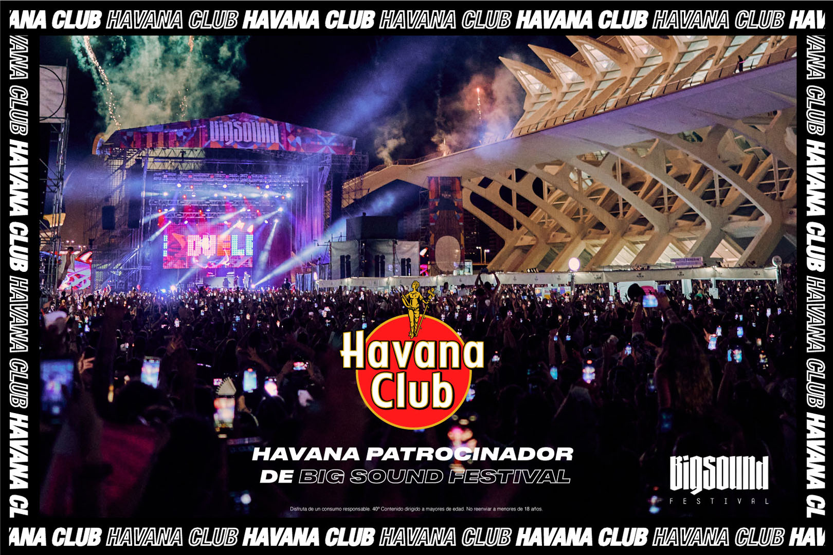 Madrid, 30 de mayo de 2023.- Con motivo del BIGSOUND Festival, que celebrará su segunda edición en la Ciudad de las Artes y las Ciencias de Valencia los días 29 y 30 de junio y 1 de julio, Havana Club se une como patrocinador en una colaboración bianual para tener presencia en el festival hasta 2024. En esta edición se darán cita artistas de la talla de Bizarrap, Manuel Turizo, Sebastian Yatra, Alizz o Duki Mora, entre otros.
