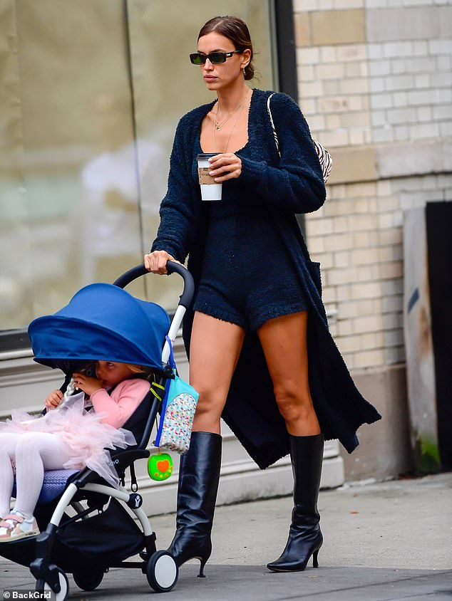 Irina Shayk is the chicest mom on the block in shorts and boots for school run in New York | Daily Mail Online