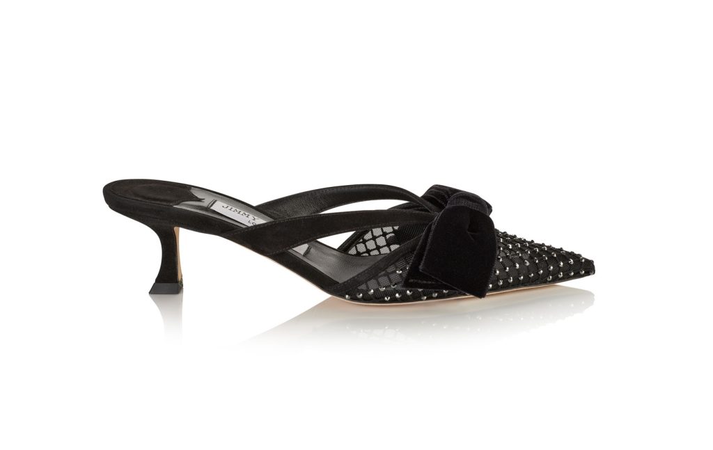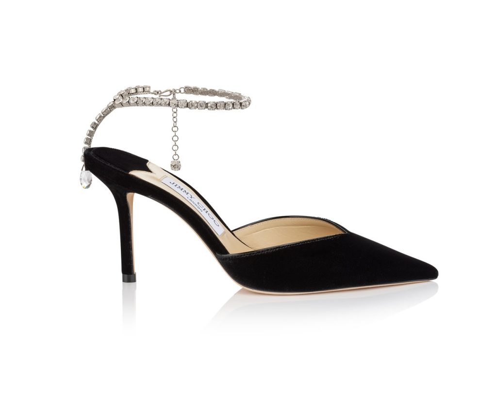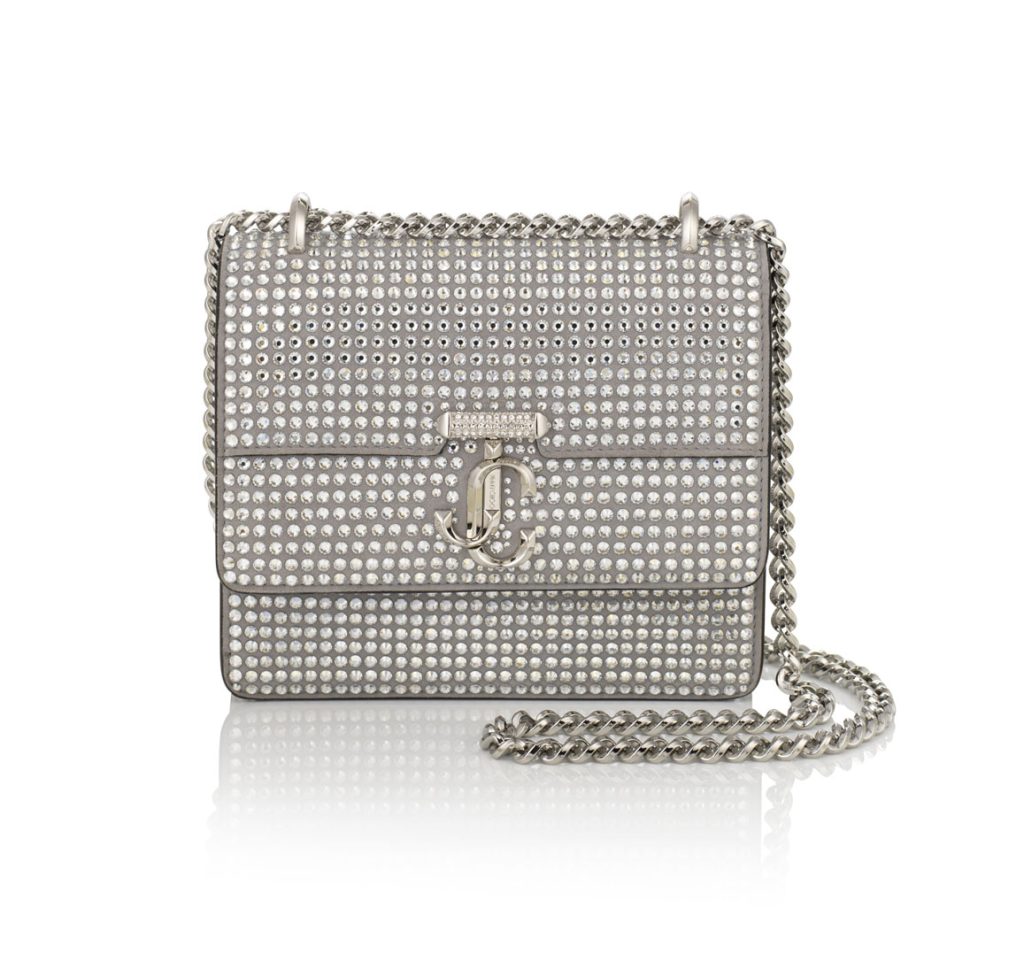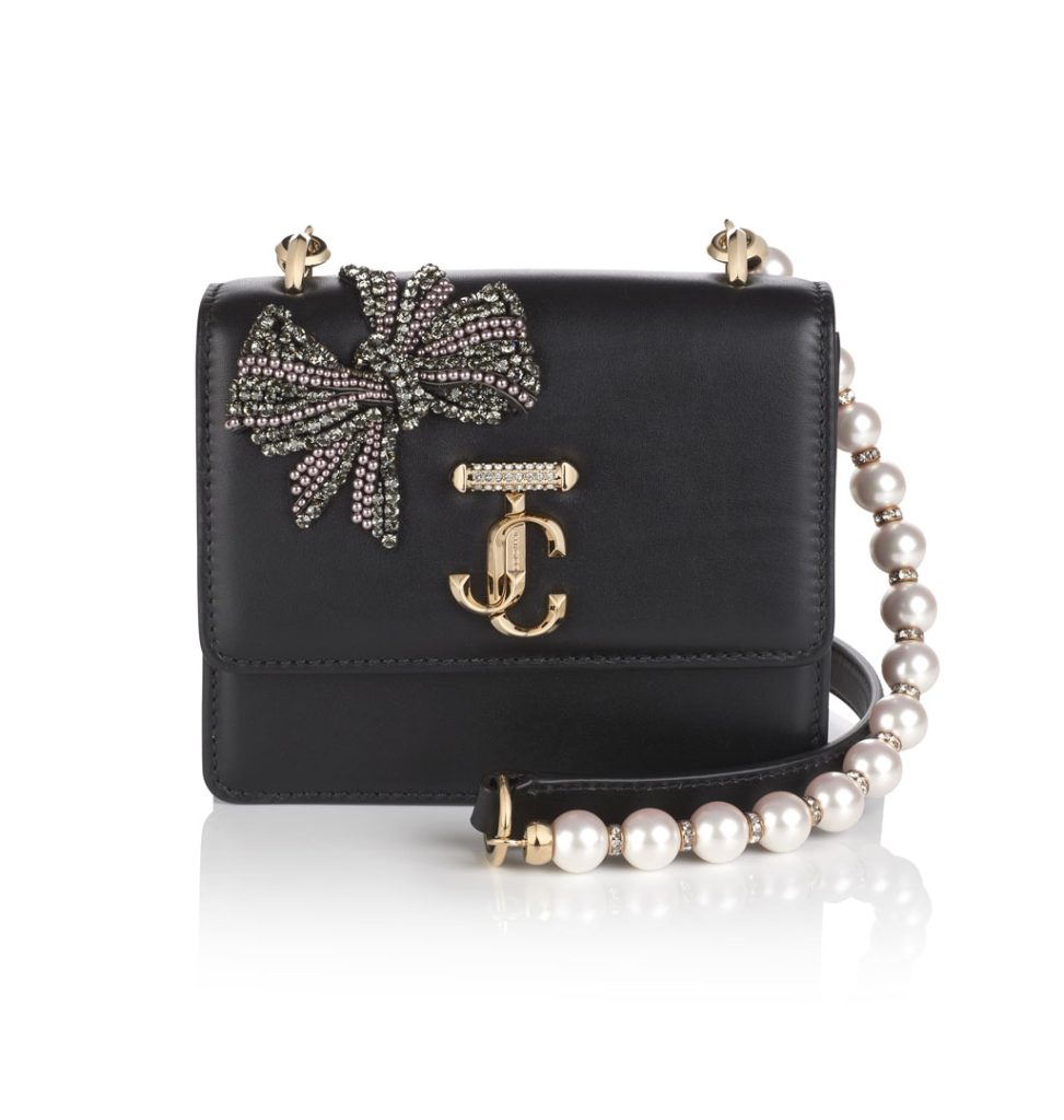 Los accesorios retoman los colores, materiales y temas clave. El BON BON y el clutch CLOUD de Jimmy Choo adoptan el lazo como decoración clave, dulcemente atado con cintas en tonos de terciopelo a juego, mientras que el giro del BONNIE en satén lila parece un cadeau listo para desenvolver. El BON BON también se propone con fastuosos flecos que alargan la silueta del bolso como los zapatos Jimmy Choo atenúan la silueta de la mujer. El CLOUD MICRO está bañado en cristal, y el VARENNE QUAD se propone en terciopelo rojo rubí o en cuero negro brillante con el característico acolchado «Avenue» como facetas – las variantes de cuero de caja se ensartan en preciosas correas de perlas.