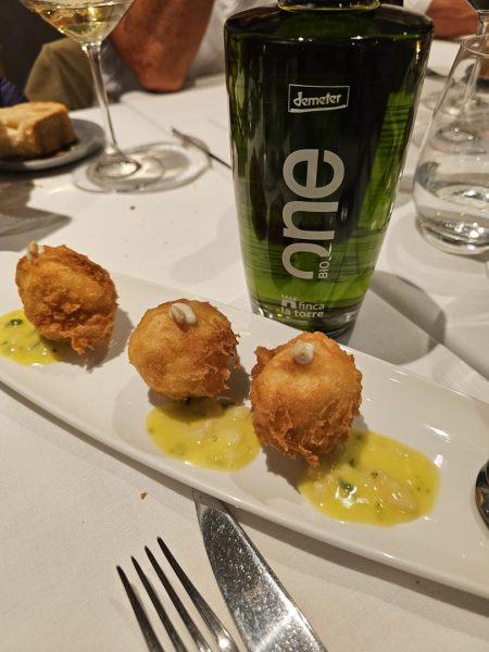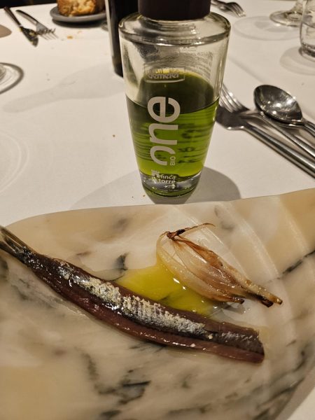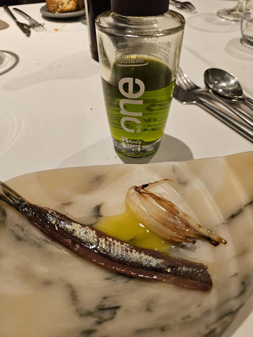 Para esta cita, Manu Yarza, chef del restaurante, ideó un menú elaborado por completo con este aceite; los comensales tuvieron la ocasión de degustar Ensaladilla, Anchoa casera del Cantábrico de Rafa López, Buñuelo de bacalao con el pil-pil de sus callos, Titaina, Croqueta de jamón y Sepia encebollada. Platos con el sello indiscutible de esta casa valenciana, cuya propuesta gastronómica pone en primer plano el producto a través de una cocina sin artificios, con una base de la tradición culinaria de esta tierra, pero con un toque más actual. El chef Manu Yarza, de 33 años, cuenta con un estilo muy personal en el que la naturalidad en los fogones le representa, donde mira al pasado con respeto, pero sin nostalgia.