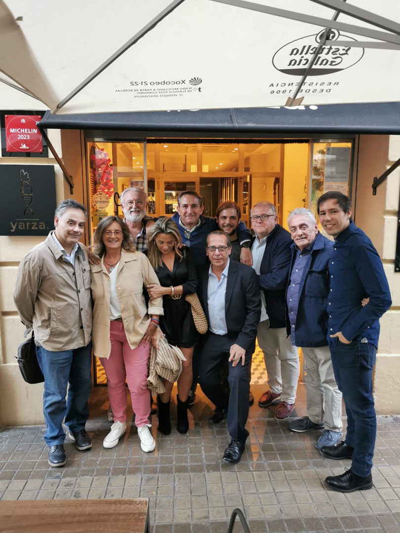 Pedro Mocholí, gastrónomo de LAMARQUESA MAGAZINE, junto al grupo de expertos en el restaurante Yarza, en la calle Císcar de Valencia.