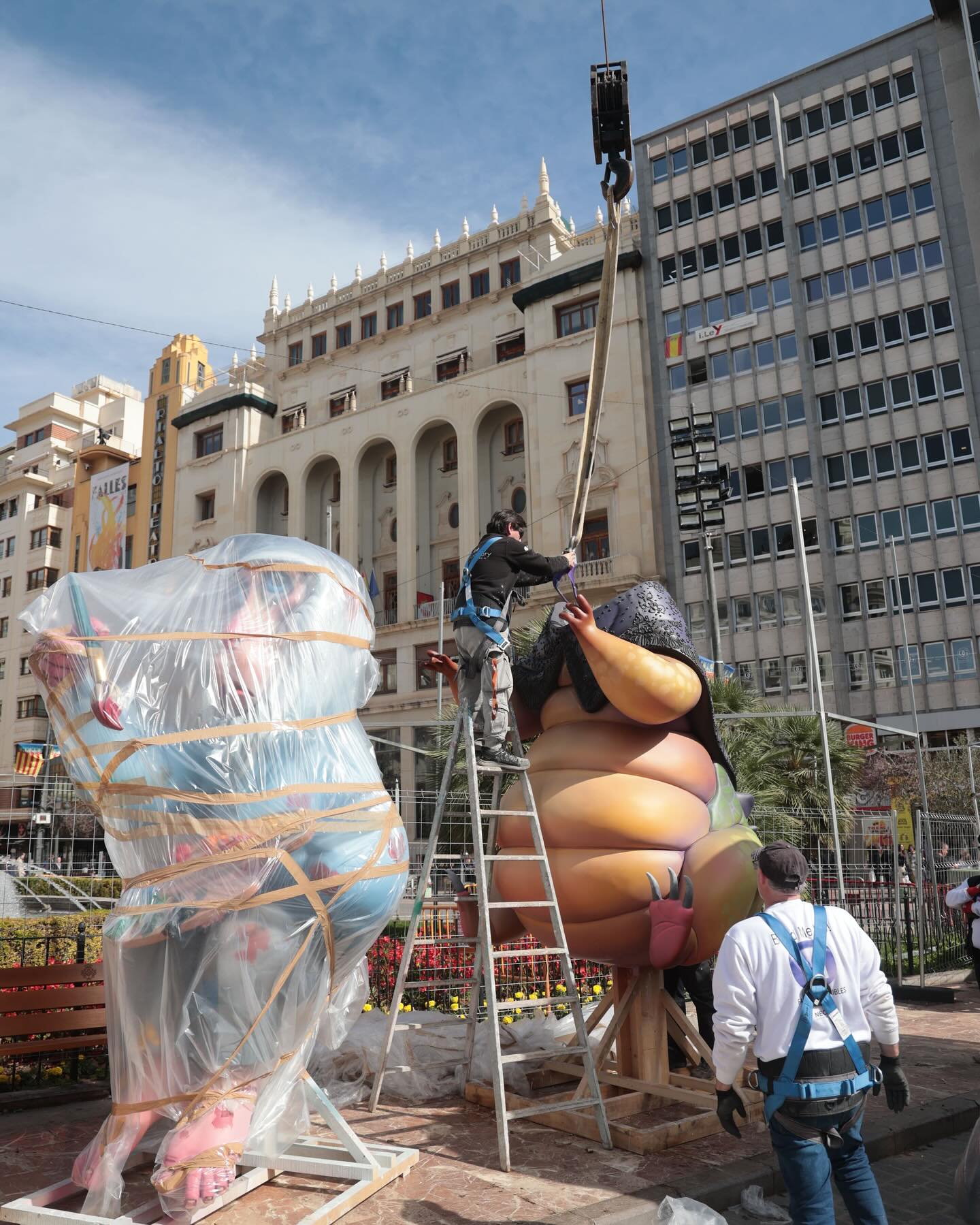 La plaza del Ayuntamiento ya acoge las primeras piezas de la Falla Municipal que anuncian a la ciudadanía el monumento que podrá verse completo a partir del próximo sábado, una vez celebrada la tradicional Plantà. Los artistas falleros Alejandro Santaeulalia y Vicente Llácer, que este año regresan a la plaza, han comenzado a descargar parte de su obra y dar forma a la “Fauna fallera”, una falla concebida para reírse de los propios falleros y es una vuelta a la falla clásica, con ninots de animales humanizados que representan distintos personajes de la sociedad fallera. #lamarquesamagazine #plazadelayuntamiento #valencia #valenciaenfallas #fallas25 #🧨