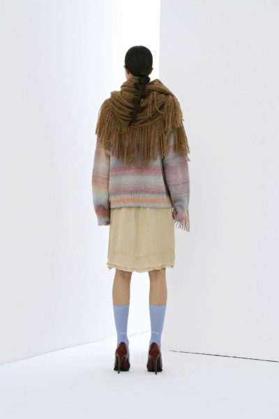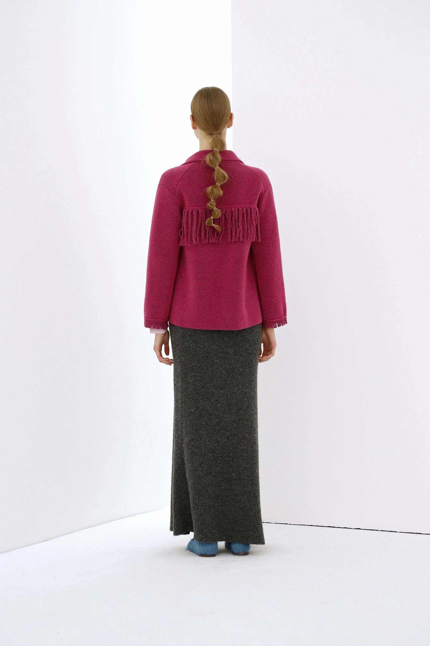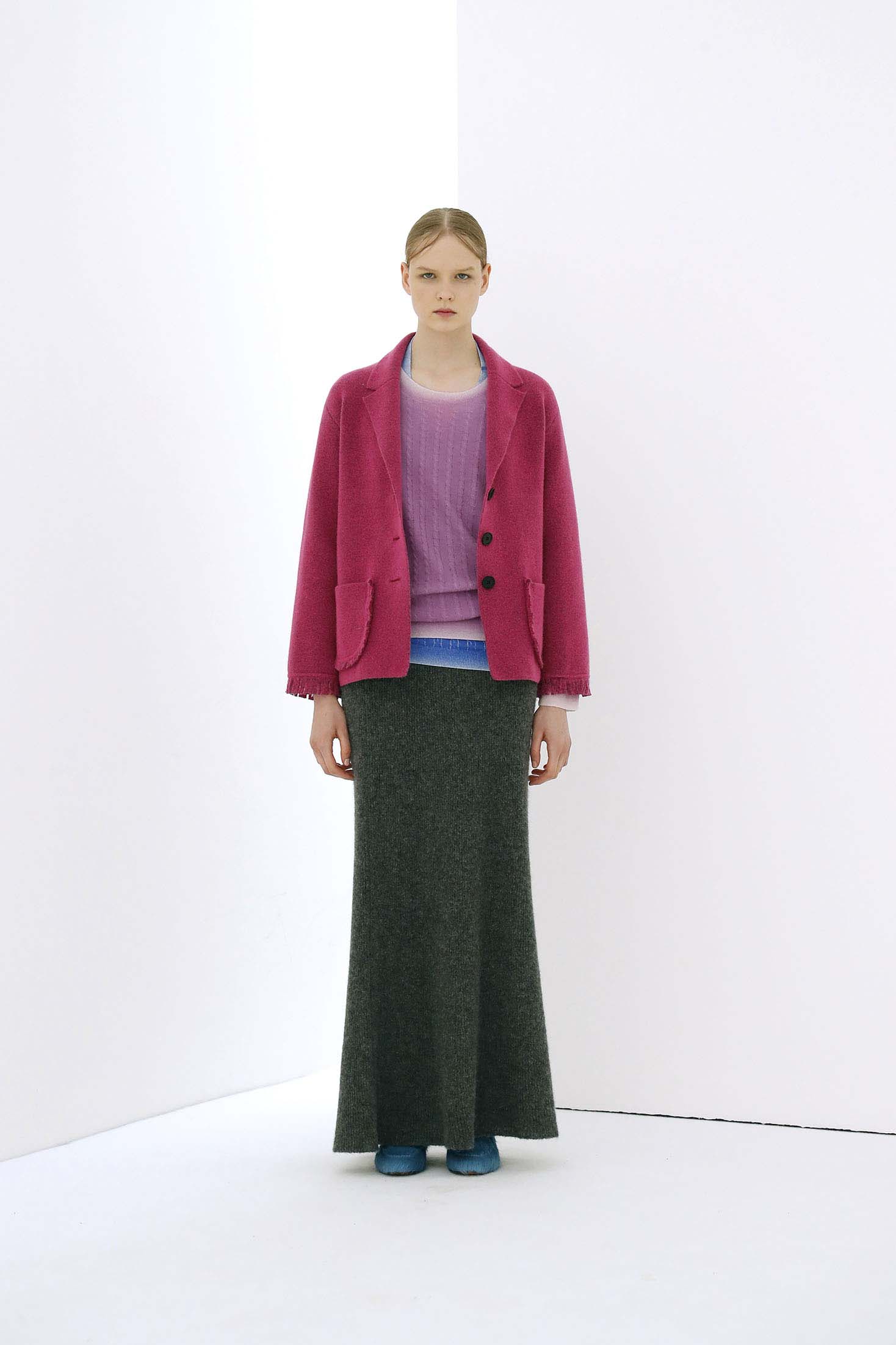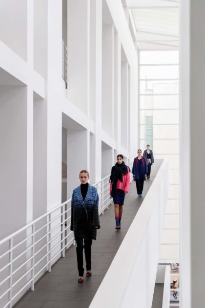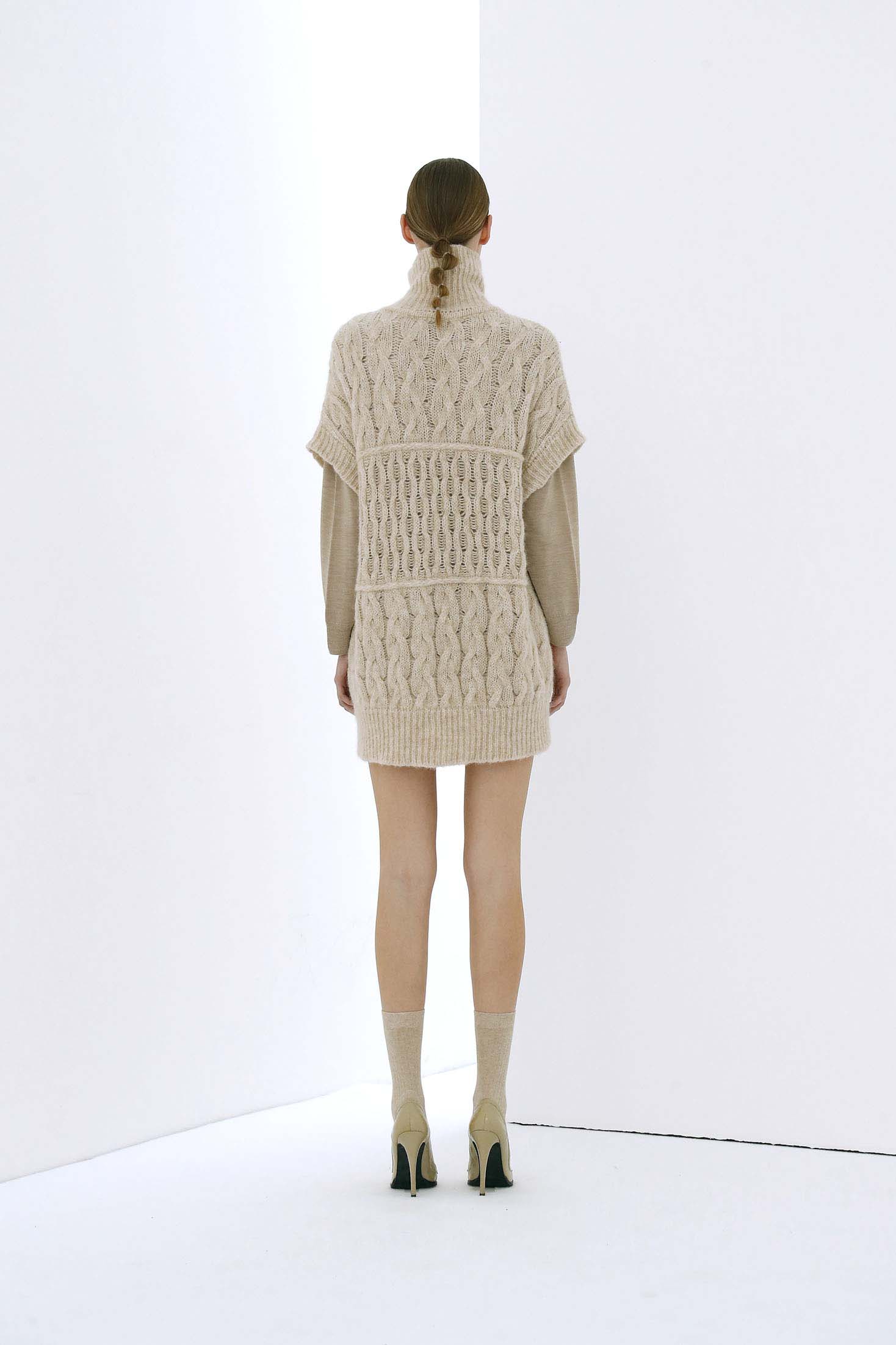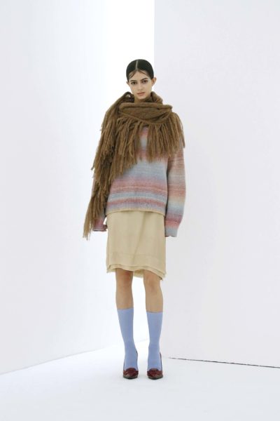 También mezclan lana Merino extrafina con seda en una serie de cárdigans, jerséis y pantalones que añaden movimiento y un aspecto más fluido a la colección de punto. El toque más invernal, lo descubriréis en los calados de baby alpaca en mantones, con y sin flecos, y chales para arroparse.