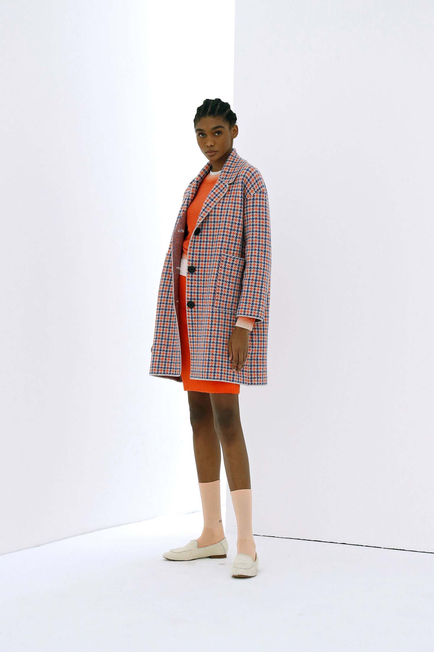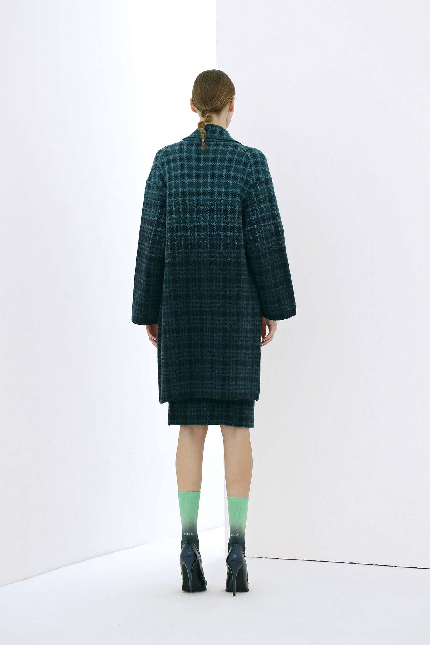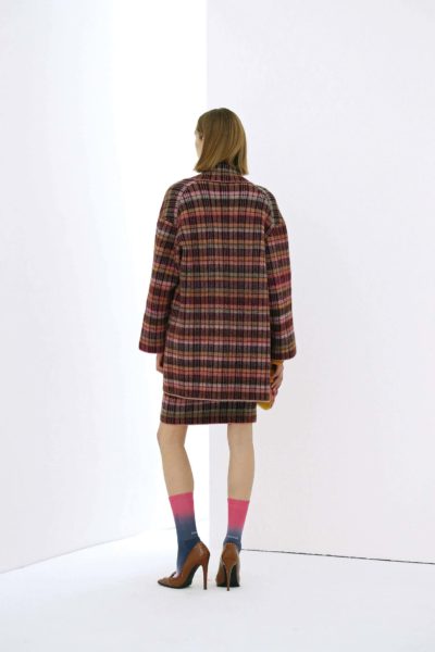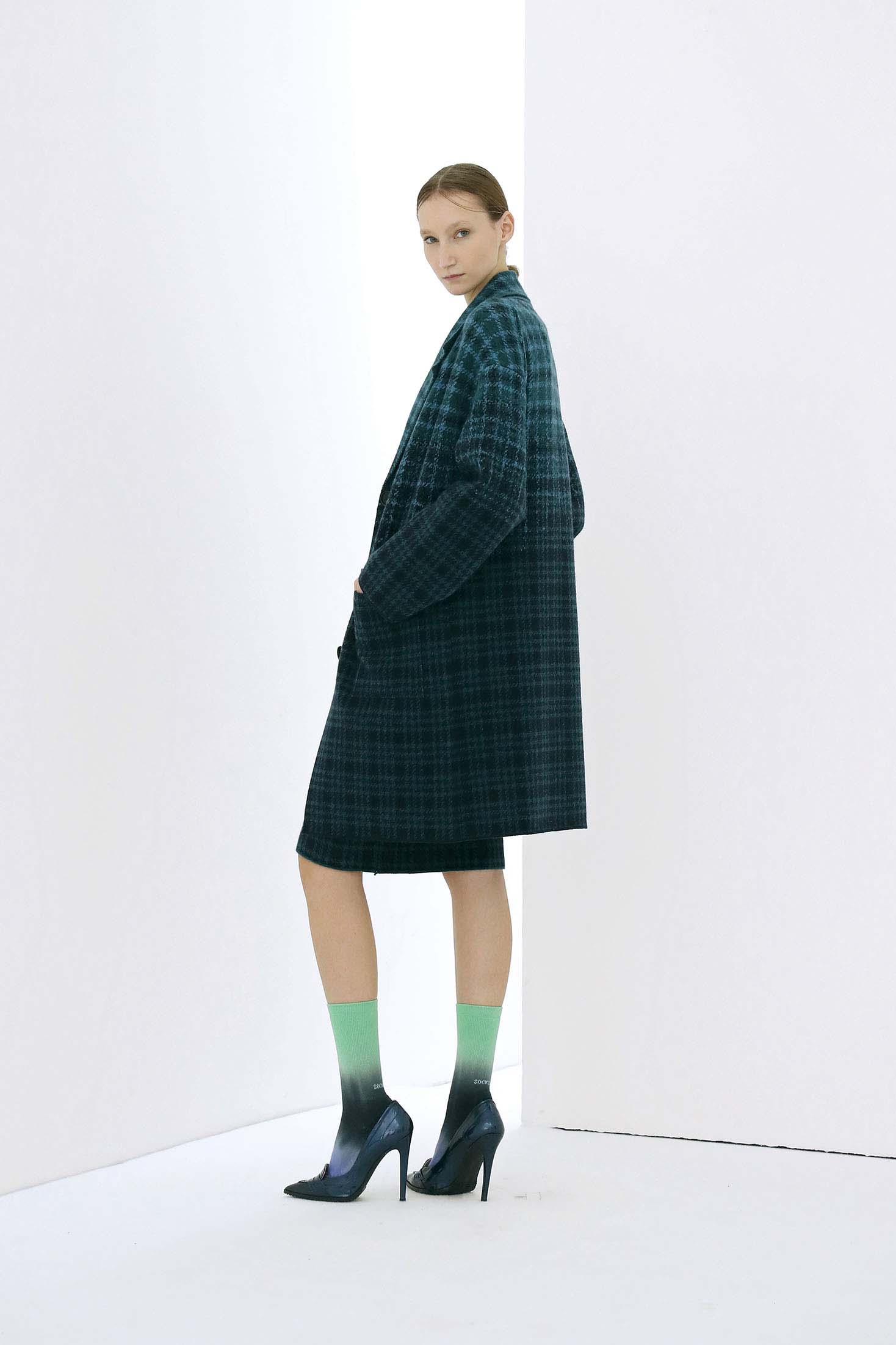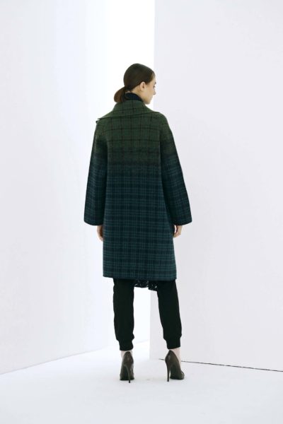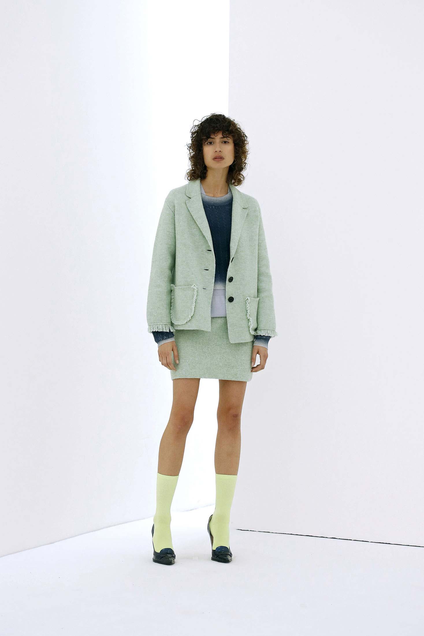 En Aurora OI22/23 encontraréis abrigos, chaquetones y chaquetas petit  en  lana  y alpaca con jacquard de cuadros, pata de gallo y de fantasía, siempre con mucho color retomando la inspiración de las luces brillantes de las auroras boreales. En esta línea, una serie de jerséis básicos lisos y con pequeñas trenzas 100% lana en un corte básico y en clave crop que aportan una alternativa muy versátil.