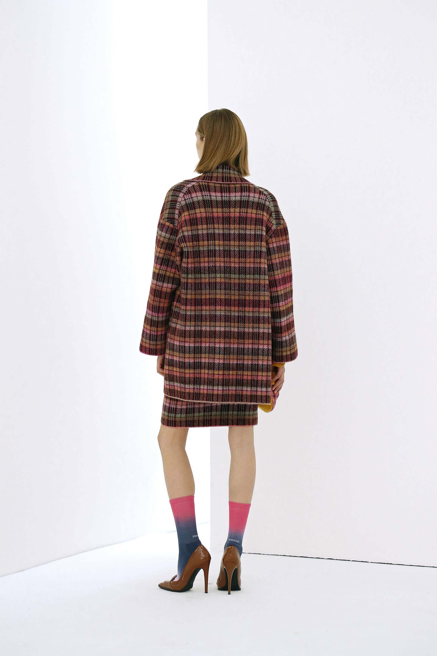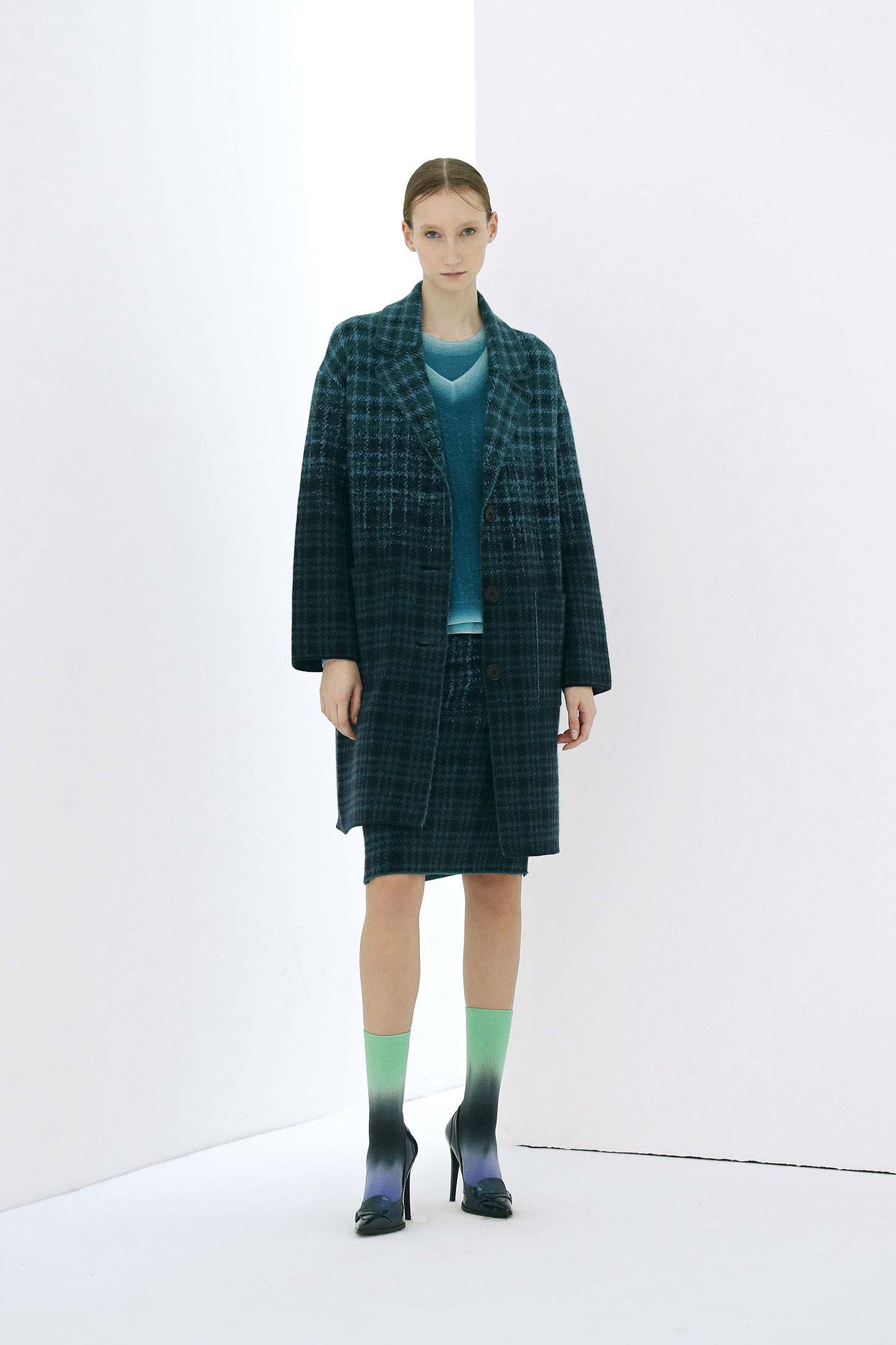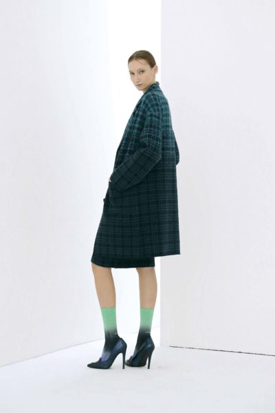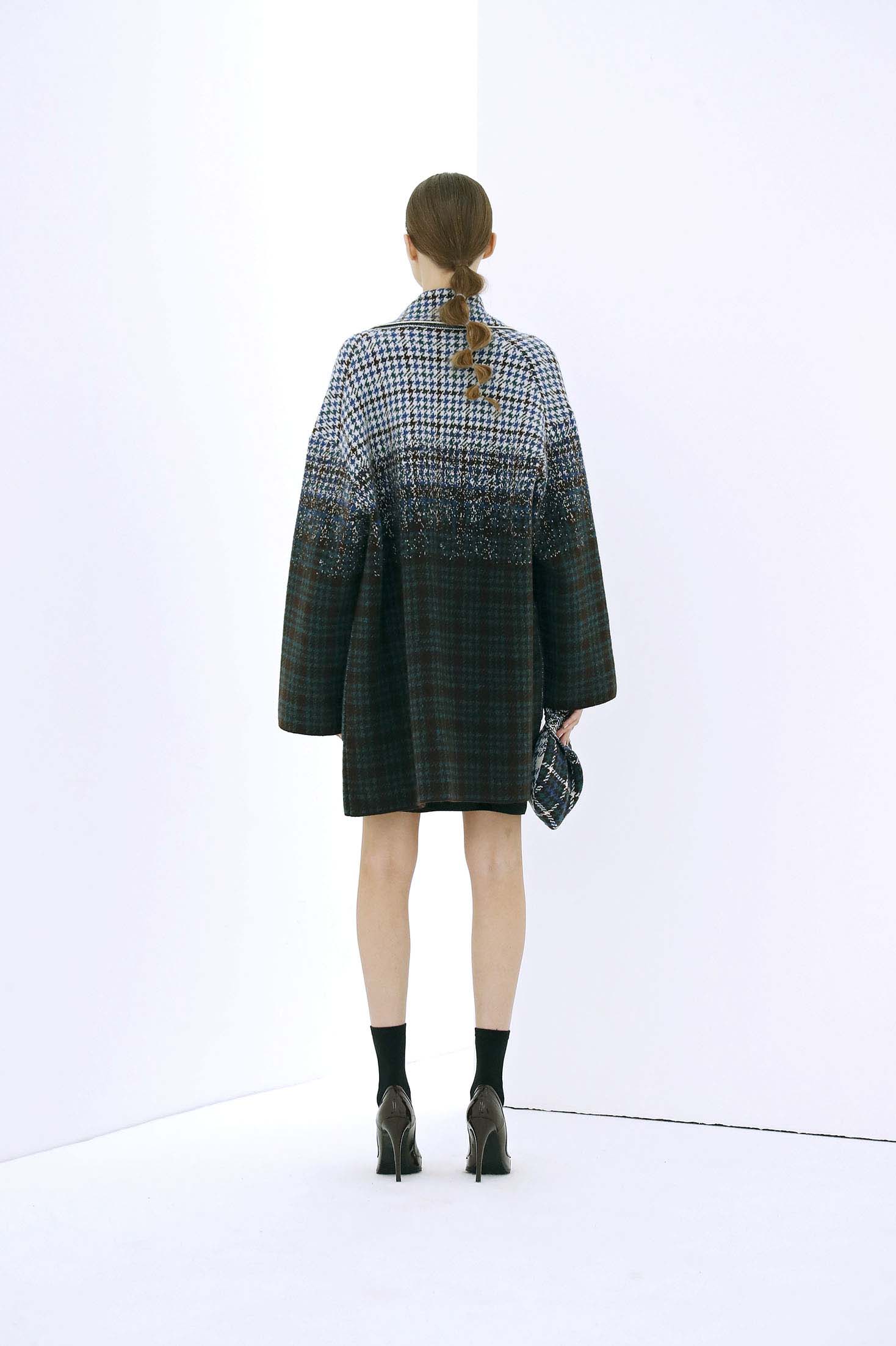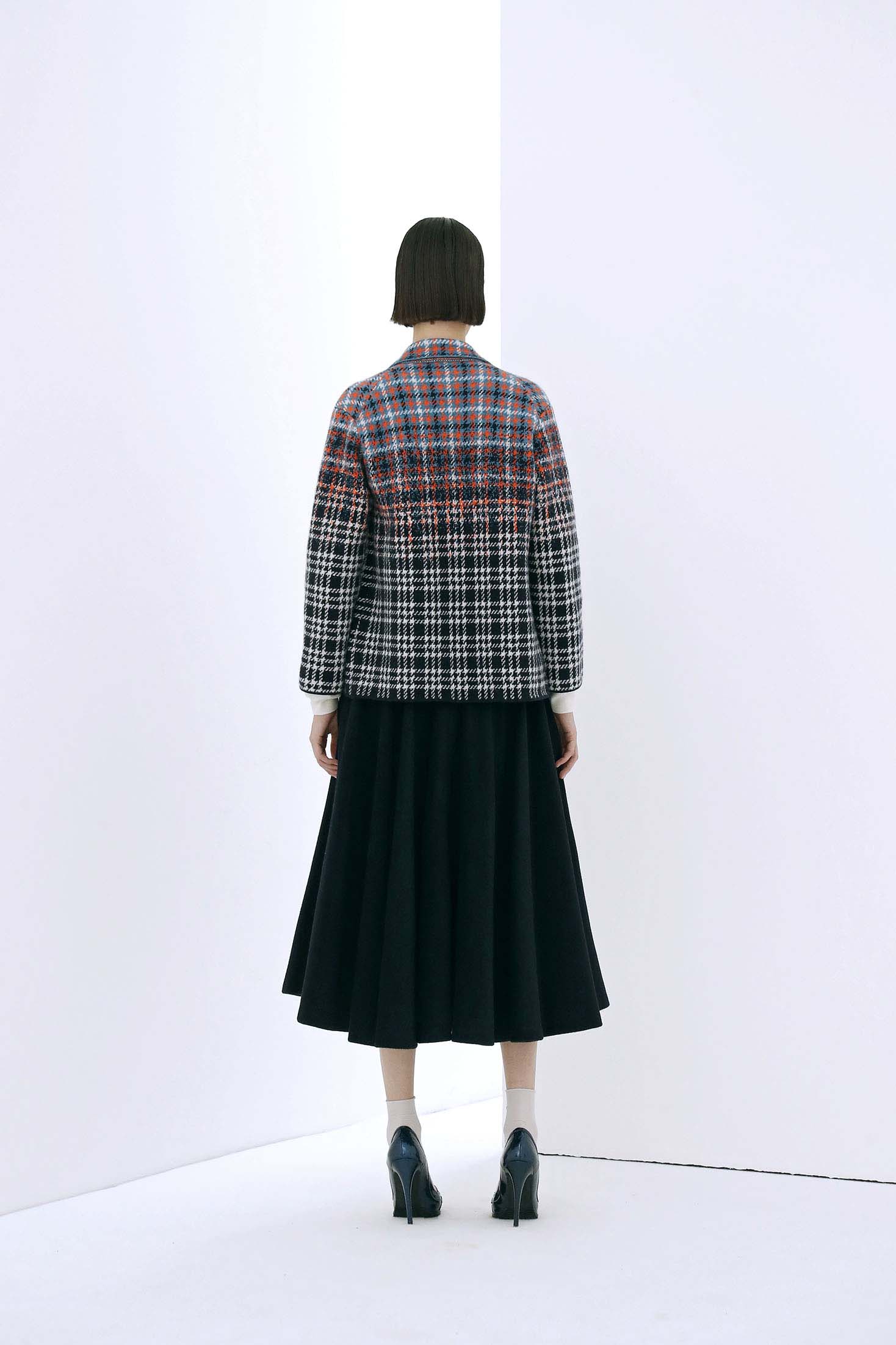 En Aurora OI22/23 encontraréis abrigos, chaquetones y chaquetas petit  en  lana  y alpaca con jacquard de cuadros, pata de gallo y de fantasía, siempre con mucho color retomando la inspiración de las luces brillantes de las auroras boreales. En esta línea, una serie de jerséis básicos lisos y con pequeñas trenzas 100% lana en un corte básico y en clave crop que aportan una alternativa muy versátil.