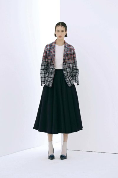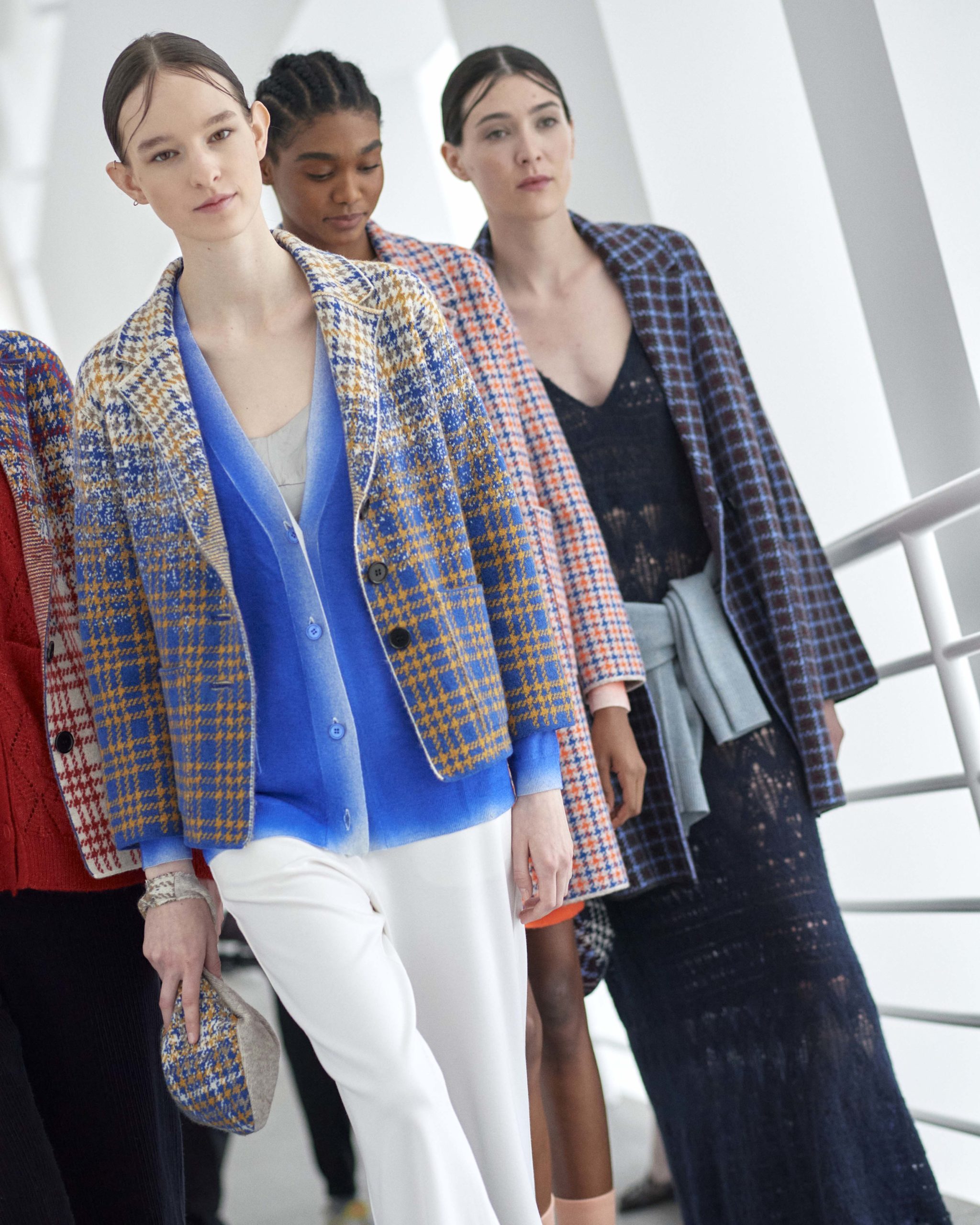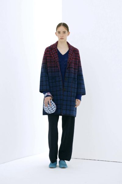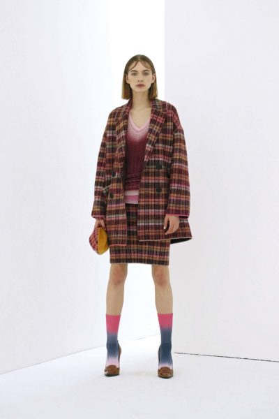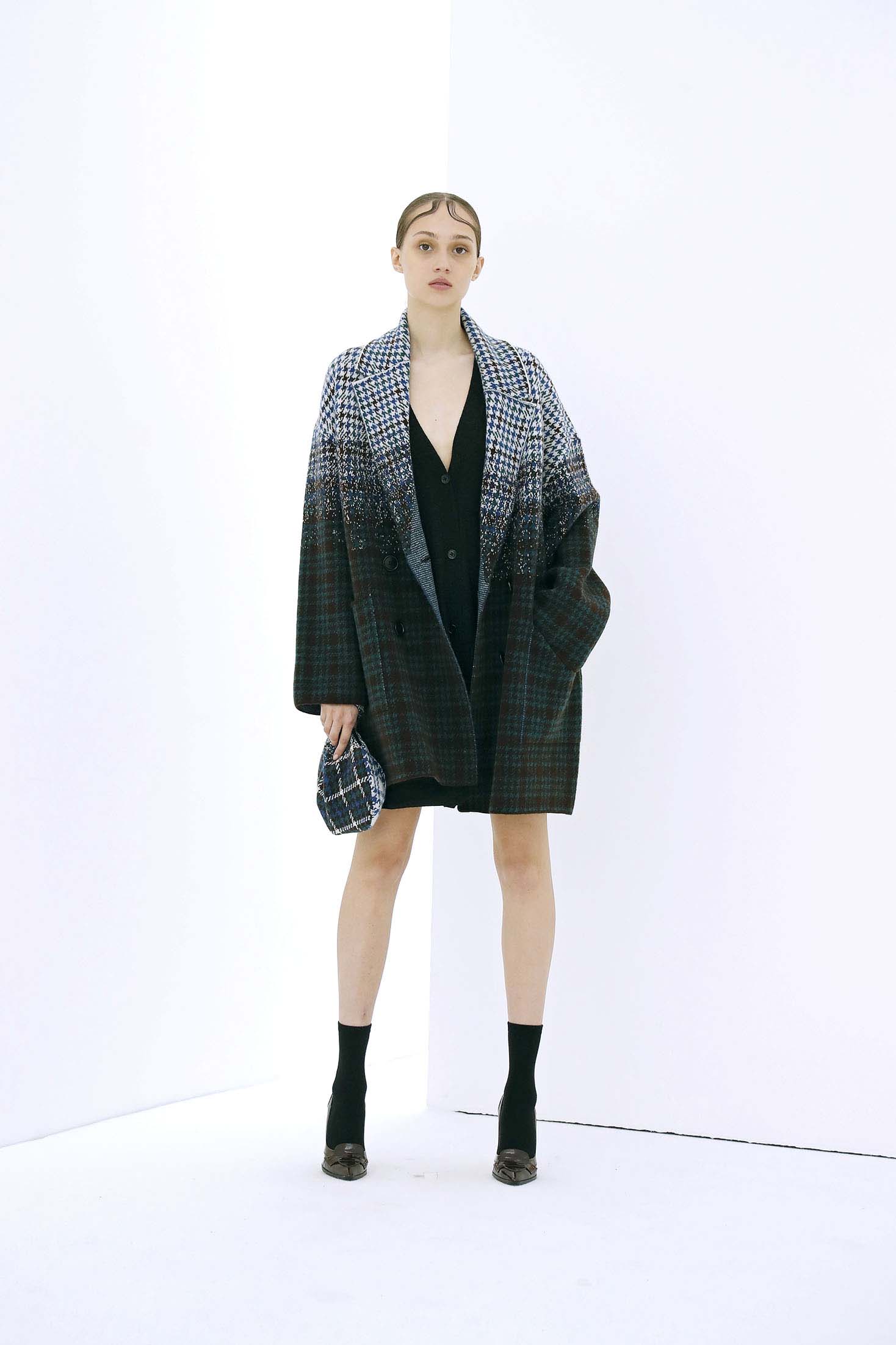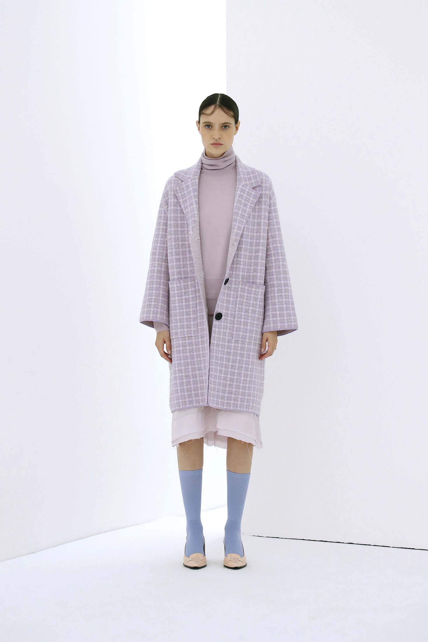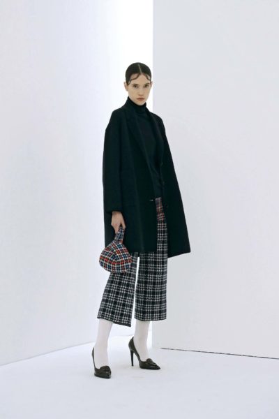 En Aurora OI22/23 encontraréis abrigos, chaquetones y chaquetas petit  en  lana  y alpaca con jacquard de cuadros, pata de gallo y de fantasía, siempre con mucho color retomando la inspiración de las luces brillantes de las auroras boreales. En esta línea, una serie de jerséis básicos lisos y con pequeñas trenzas 100% lana en un corte básico y en clave crop que aportan una alternativa muy versátil.