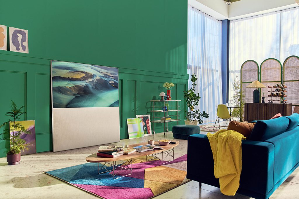 Para los más minimalistas, este San Valentín traemos el televisor OLED Easel, un televisor lifestyle que emula un caballete de pintura e incorpora una cubierta textil móvil diseñada por Kvadrat.