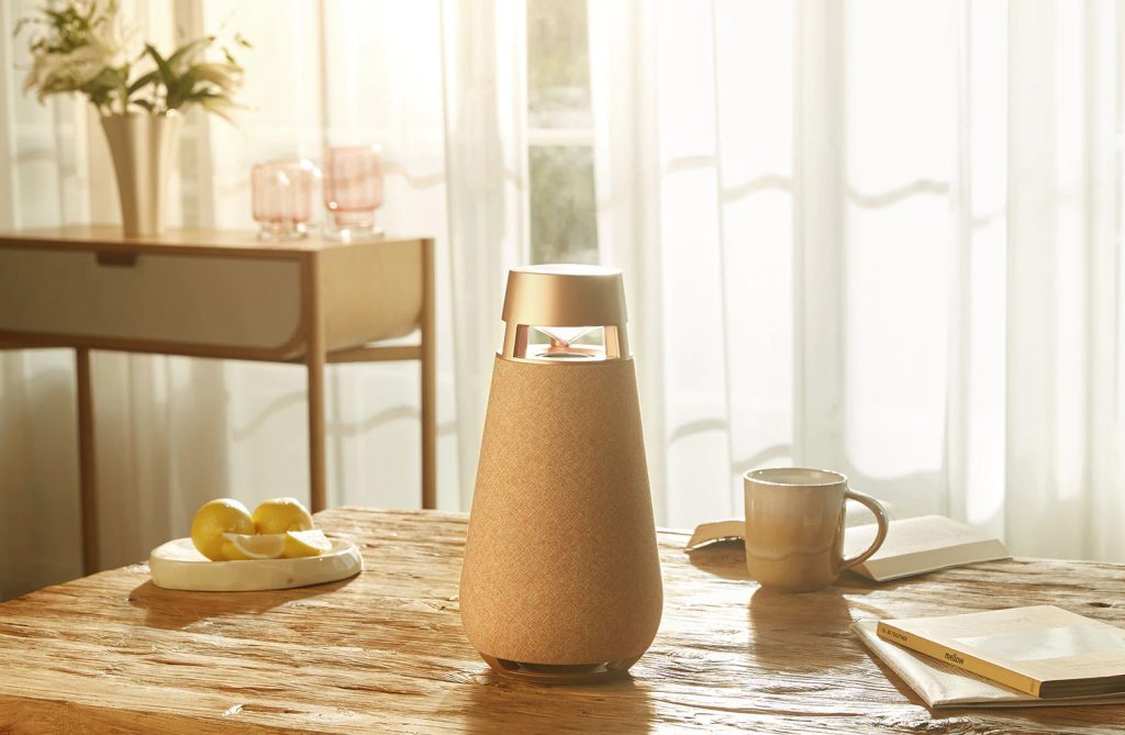 donde coloques el altavoz, la tecnología de sonido de LG combinada con la forma del altavoz hace que el sonido se escuche por igual en toda la estancia con un audio omnidireccional natural y de alta calidad.