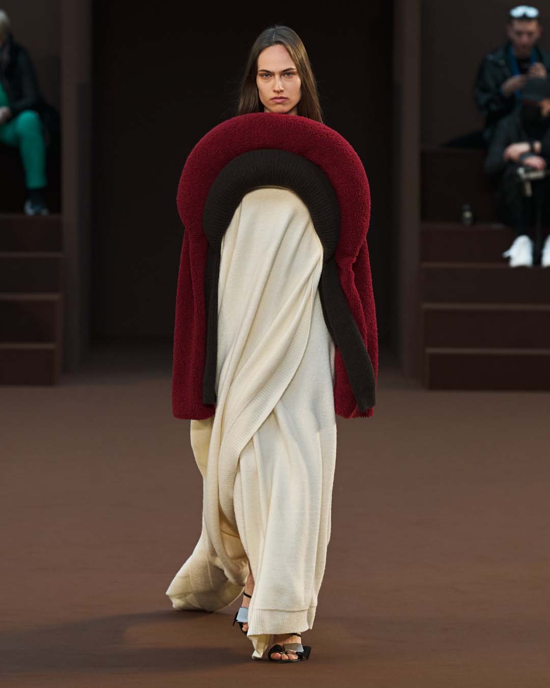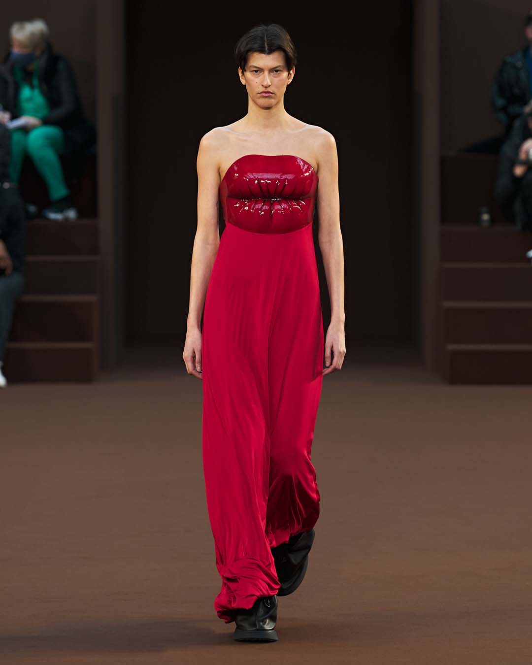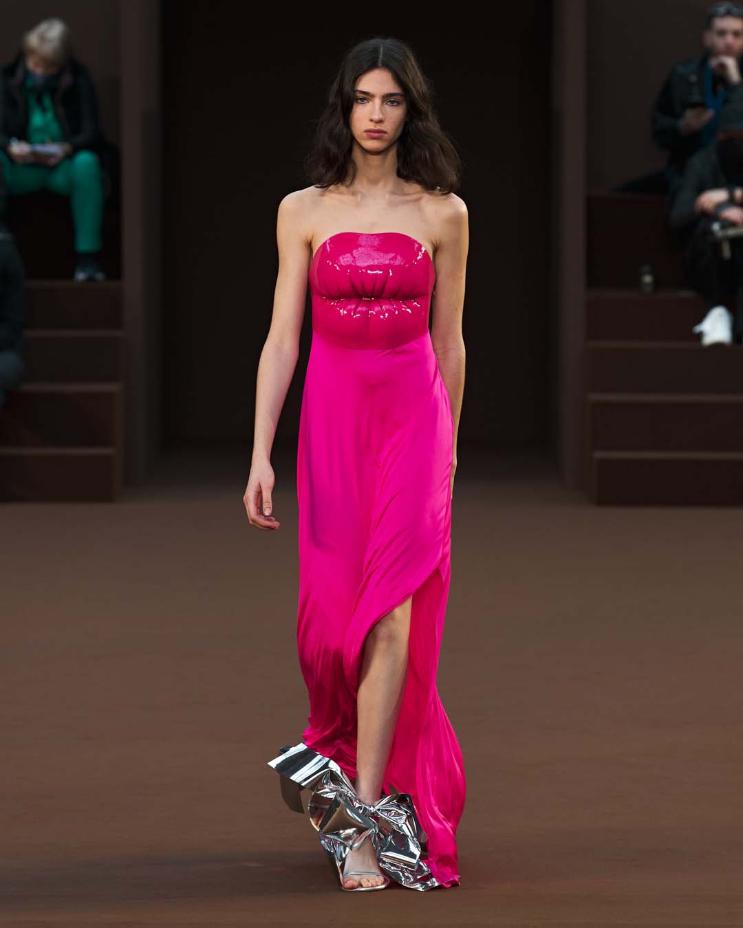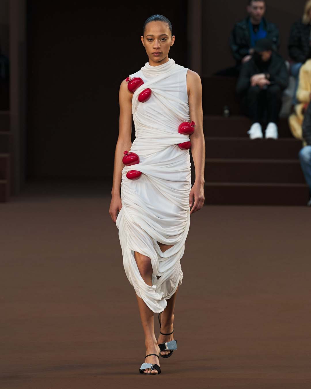 Más drapeados, un abrazo de trampantojo y más globos, hasta los tacones.