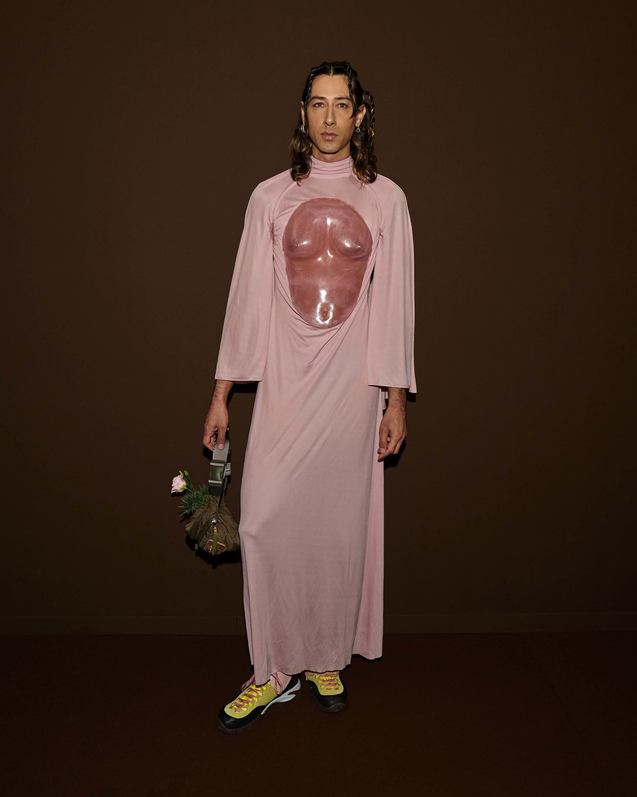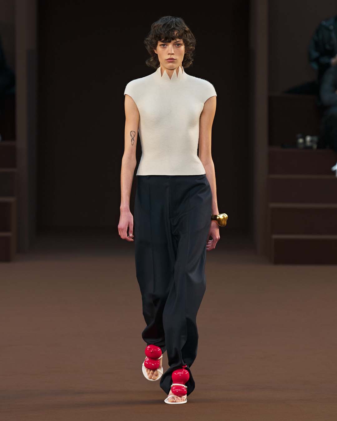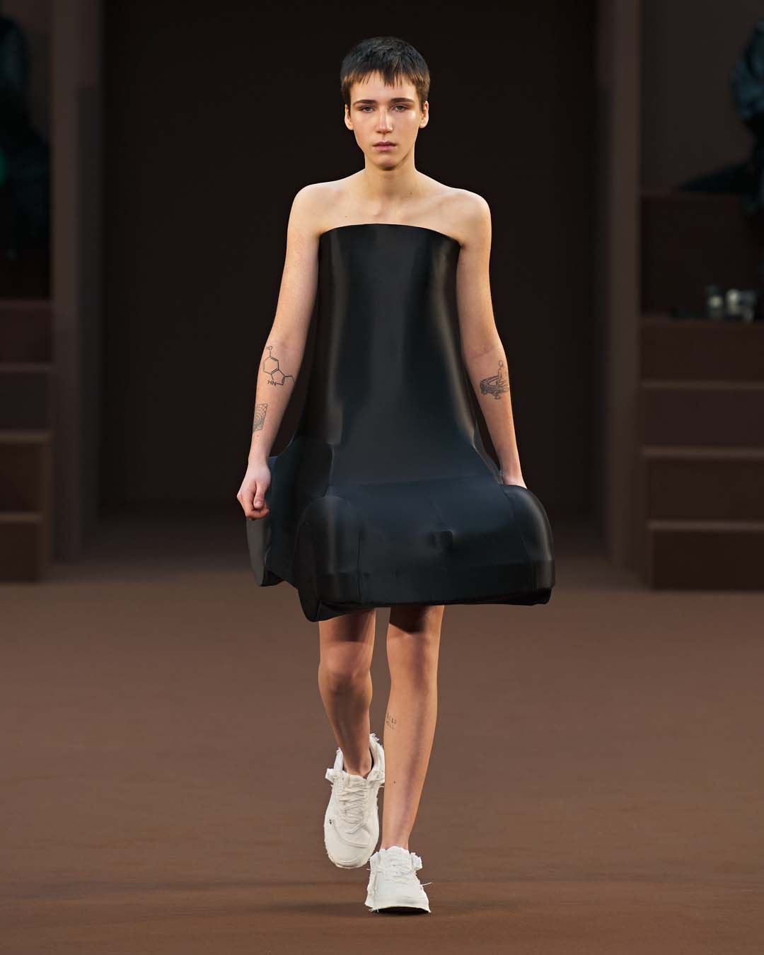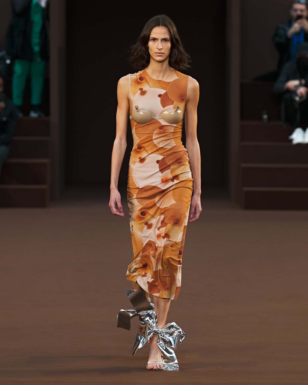 Más drapeados, un abrazo de trampantojo y más globos, hasta los tacones.