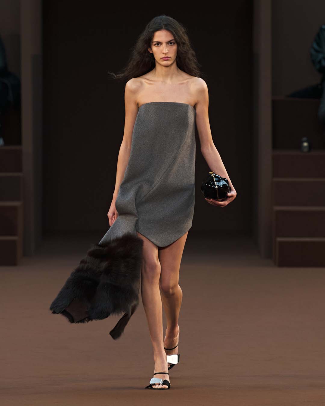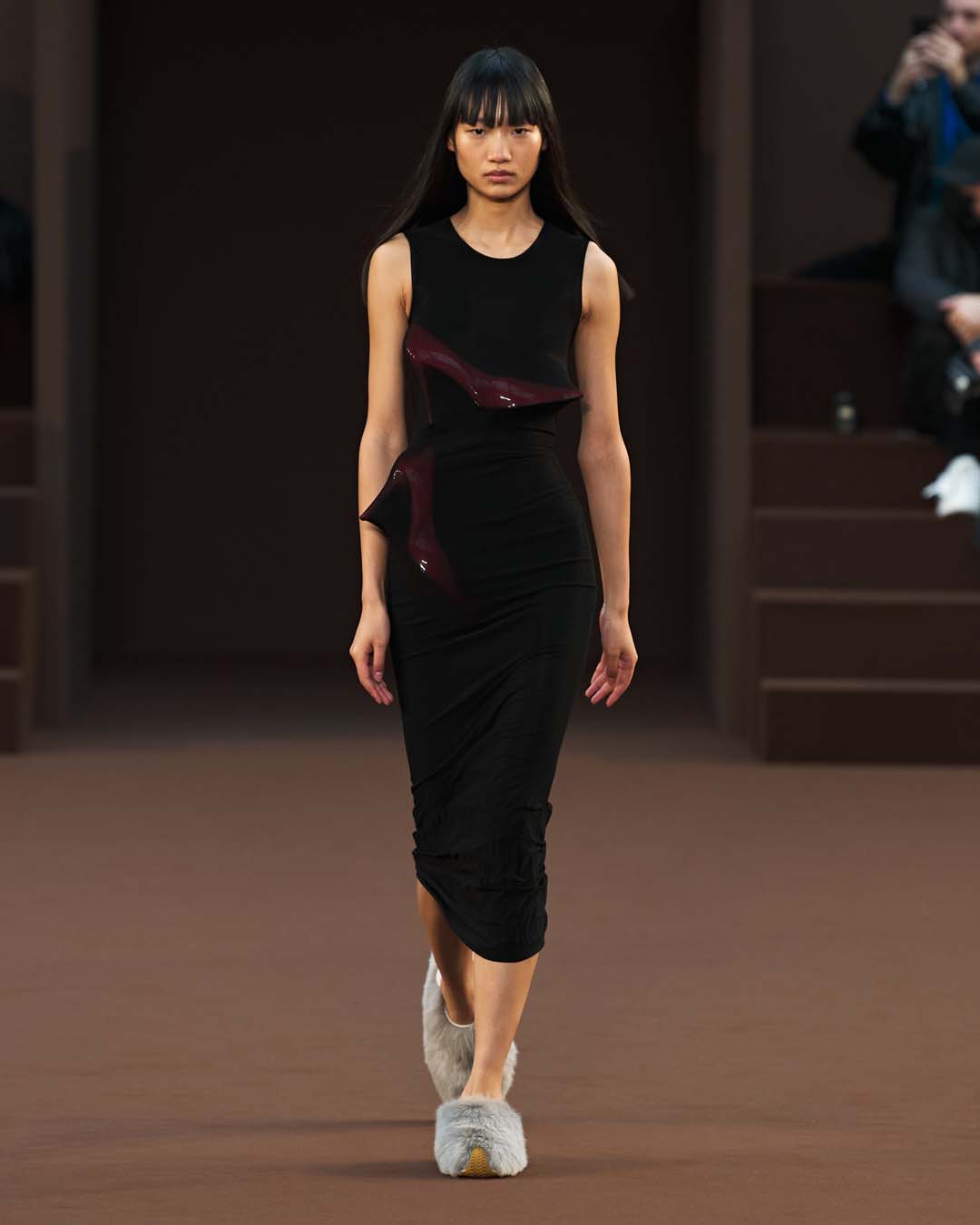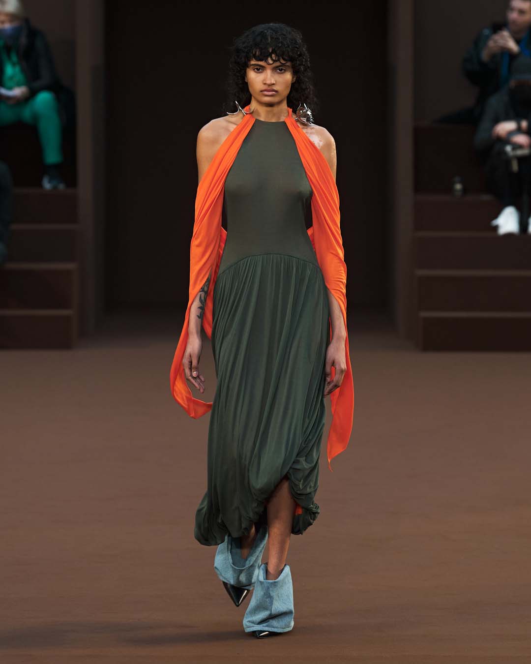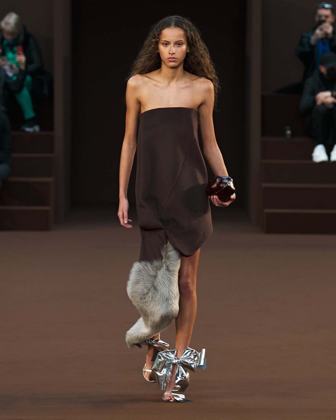 Más drapeados, un abrazo de trampantojo y más globos, hasta los tacones.