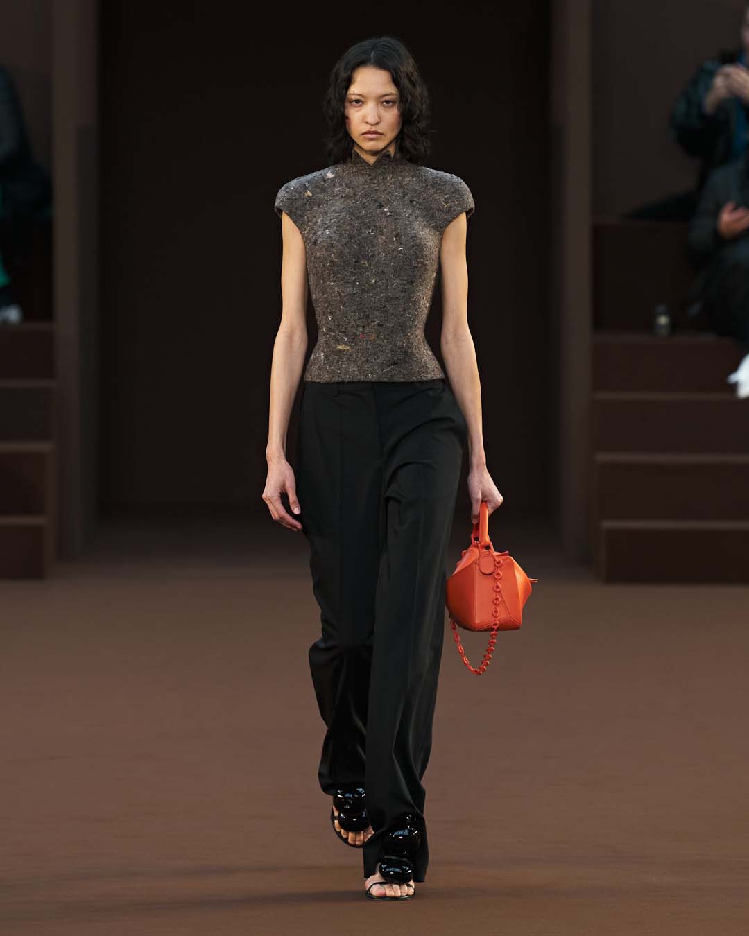 cuero, tweed, punto, fibra impresa en 3D, seda, resina. Se captura el