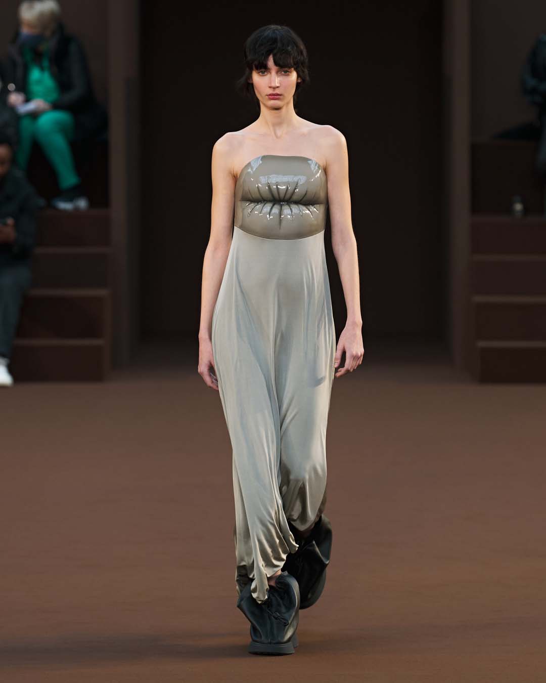 bustiers de fieltro moldeado, vestidos drapeados con pecheras de labios