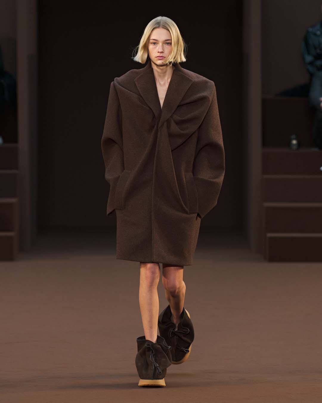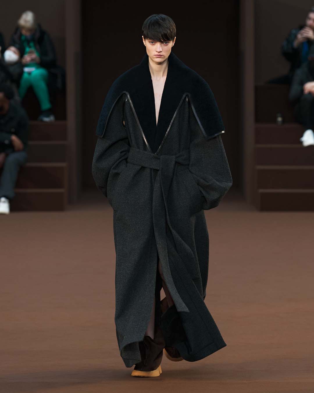 marrón, inspirada en las bolsas de sake y que recuerda a la tierra: una escena primitiva.