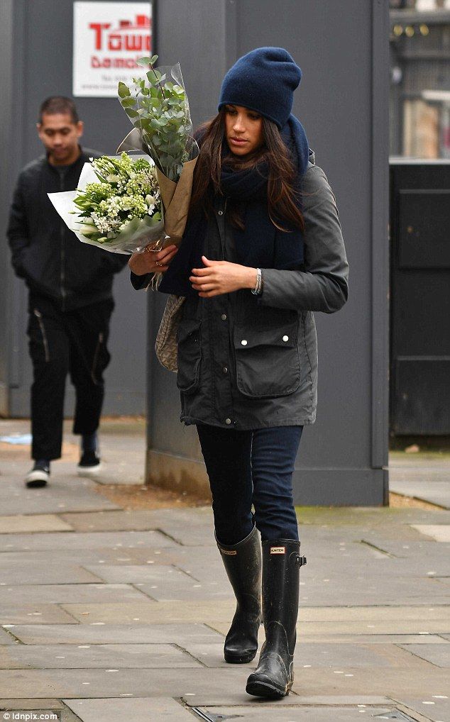 Suits actress Meghan, who is said to have practically moved into Harry’s Kensington Palace cottage, looked chic in Hunter wellies and a Barbour coat for the occasion