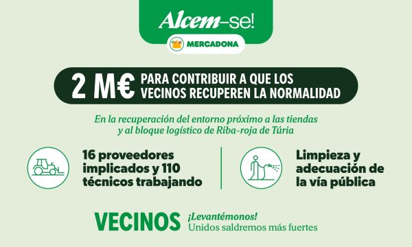 • La compañía, con el objetivo de contribuir a que los vecinos recuperen la normalidad, gestiona la limpieza y adecuación de los alrededores de sus tiendas y del bloque logístico de Riba-roja de Túria.