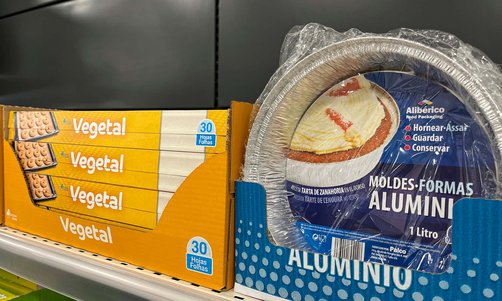 Papel Vegetal y Moldes de Aluminio en el lineal del supermercado.