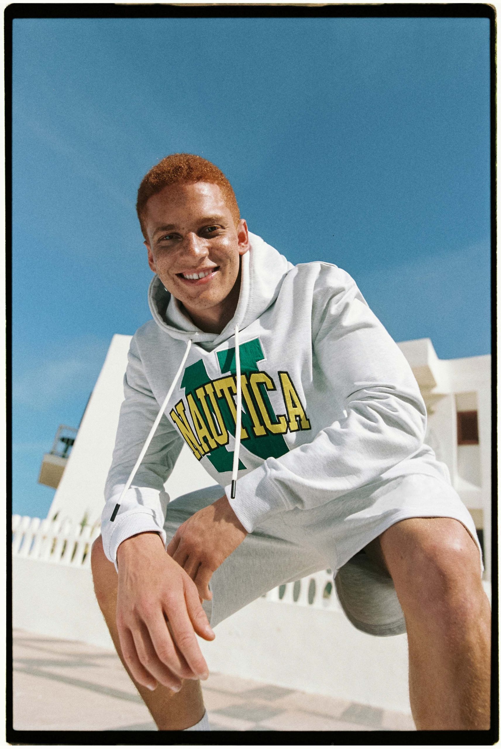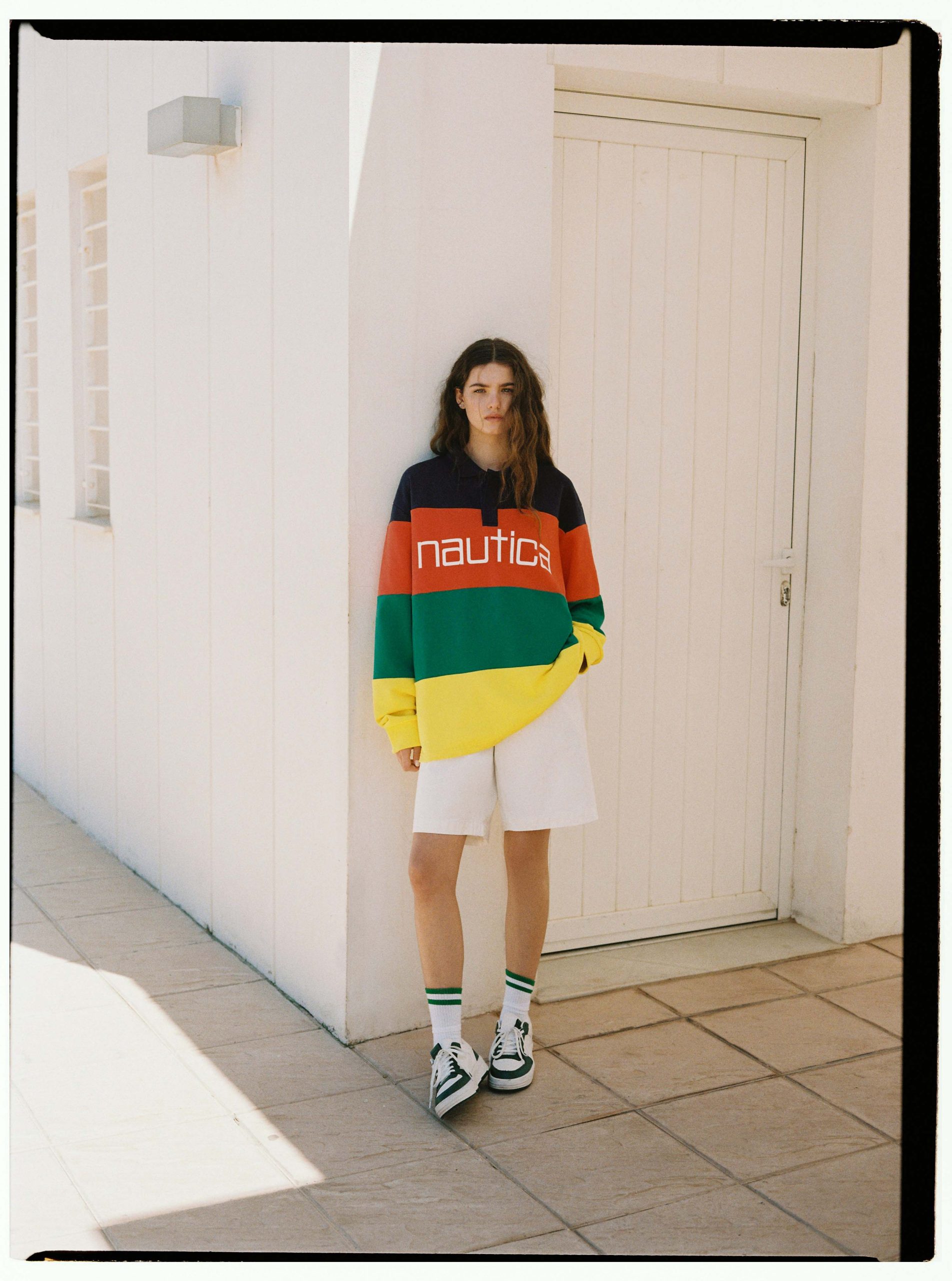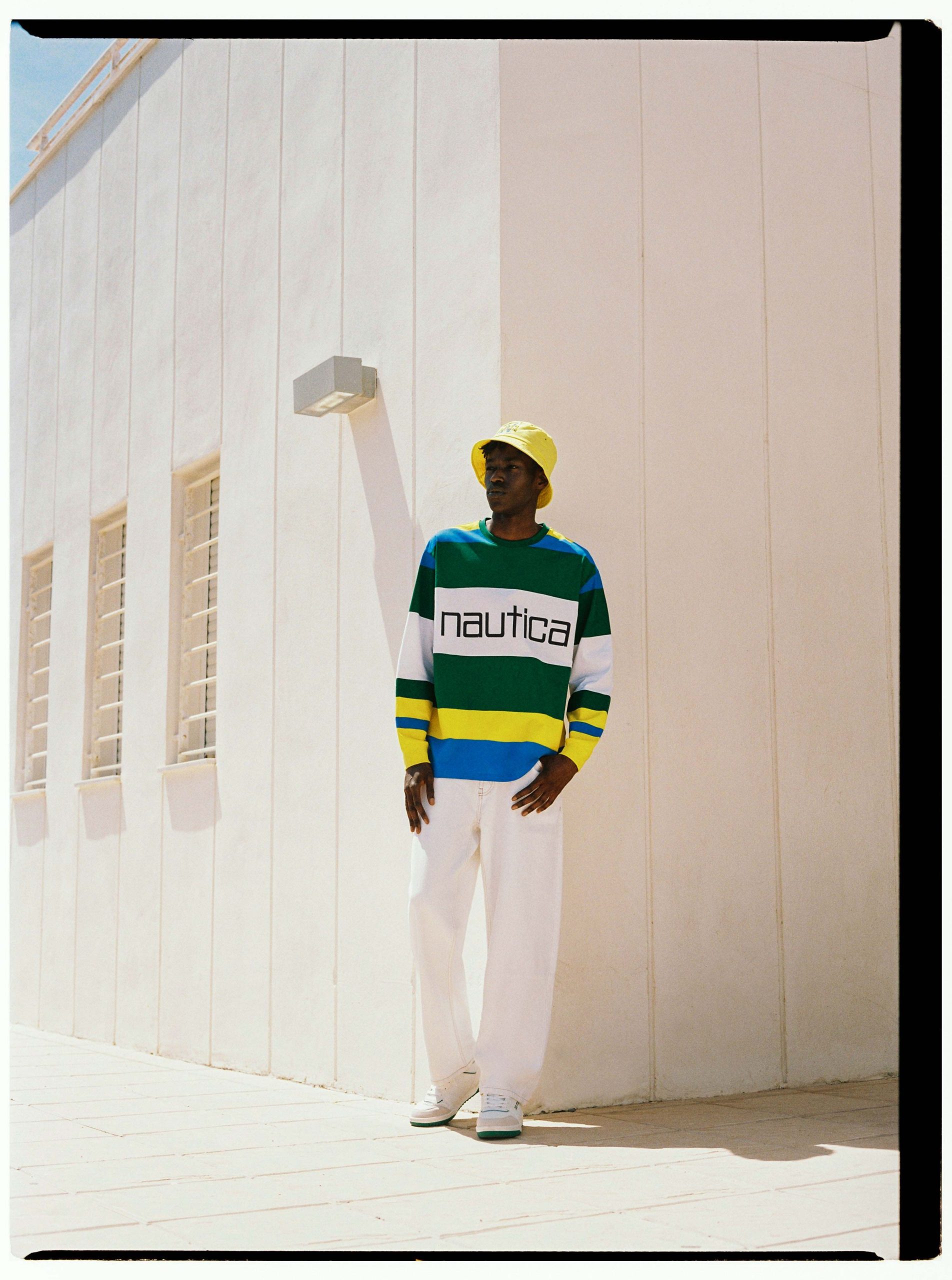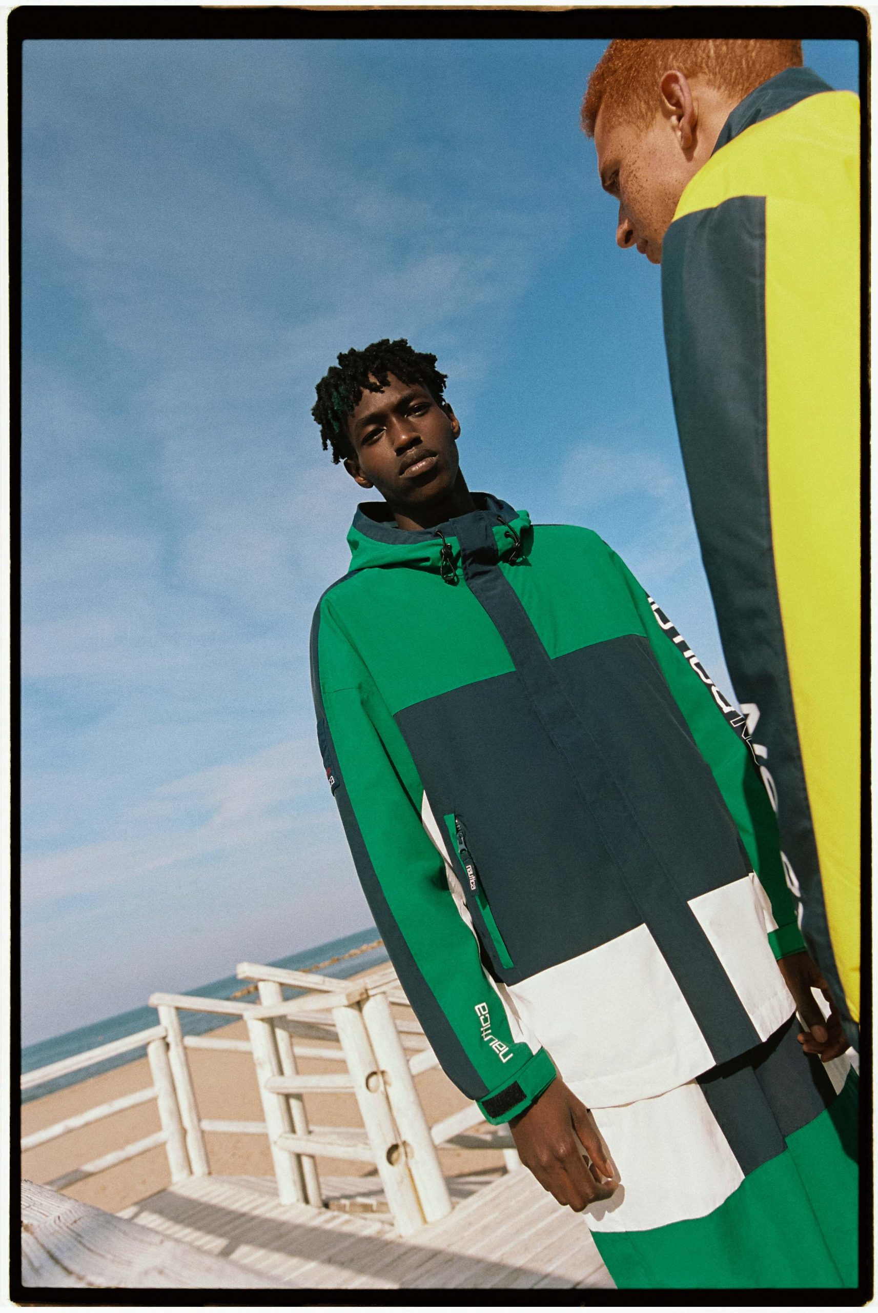 A lo largo de toda la colección se incorporan elementos inspirados en alta mar como banderas, códigosnáuticos y una paleta de tonos azul royal, verde, blanco y amarillo que rinde homenaje a los orígenes de Nautica. En prenda exterior, los chubasqueros bicolor en contraste con logo estampado están llamados a convertirse en todo un imprescindible. Además, la sección de accesorios incluye una selección de sneakers, sandalias pala, gorras y sombreros bucket.