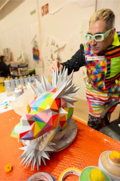 Para este artista su Dragón es “un dragón muy personal, más futurista, más geométrico, con toda mi identidad piramidal y colorista, que intenta mostrar ese cambio que estamos viviendo del mundo físico al mundo virtual, a la vez que abanderar la multiculturalidad y la convivencia que debe ser señal de identidad para nuestro futuro”.