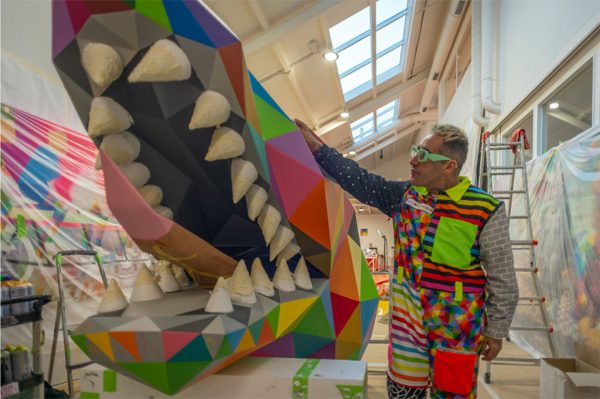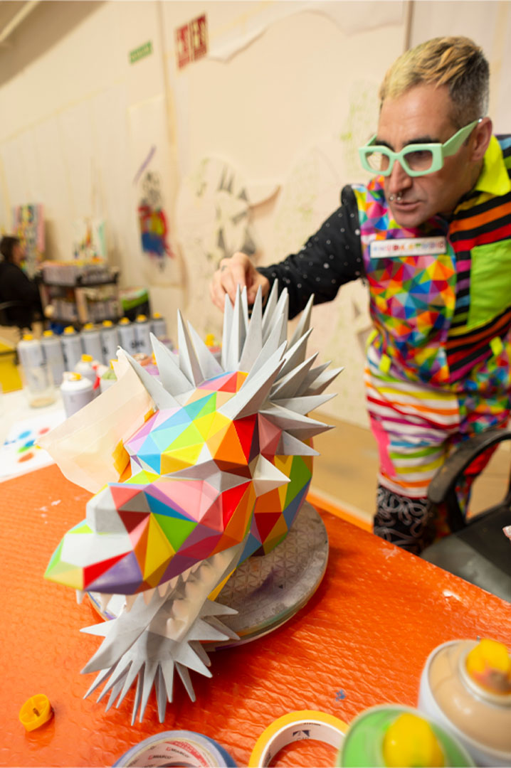 Okuda San Miguel, conocido por su estilo surrealista pop repleto de estructuras geométricas y colores vibrantes, aporta su propio diseño y reinterpretación del Dragón del zodiaco chino a esta festividad. Su creatividad, reconocida internacionalmente, se ha convertido en un vehículo para proyectar la herencia cultural española de forma actualizada e innovadora.