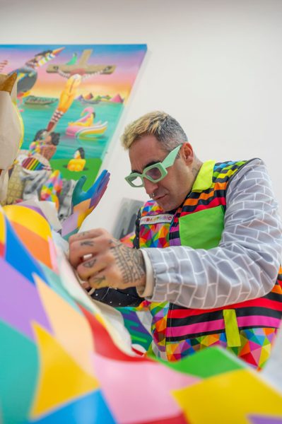 “Creo que el proyecto es muy redondo porque combina escultura de gran y medio formato con intervención de la fachada exterior con esa lona gigante, y una serie limitada de papel y escultura, haciendo el proyecto accesible para todos los públicos”, explica el artista.