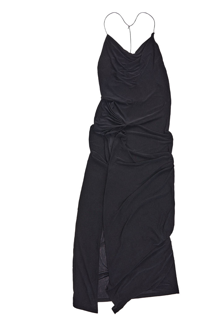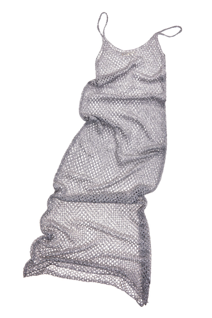 La colección, de marcado carácter festivo, llega con una selección de piezas como vestidos largos, jeans y tops. Los drapeados, transparencias, cortes asimétricos o tejidos de red son características clave de la colección. En la gama crómática de la colección predomina el negro en sofisticados vestidos de noche, el fucsia o los tonos metalizados, como en una de las piezas clave de la colección: el vestido metalizado de rejilla.