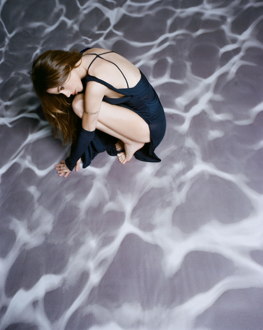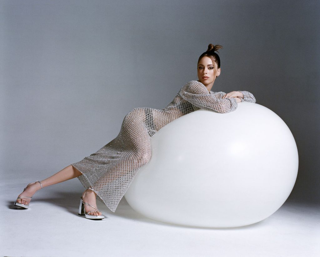 diseños de la cápsula en una atmósfera minimalista donde la artista y los diseños de la colección son