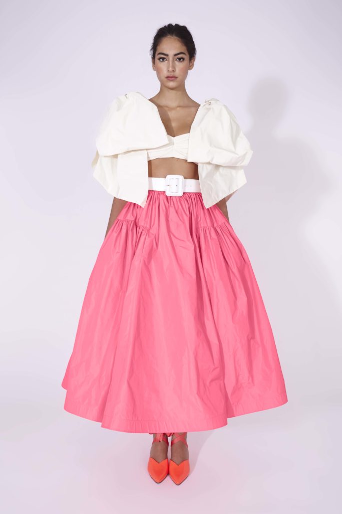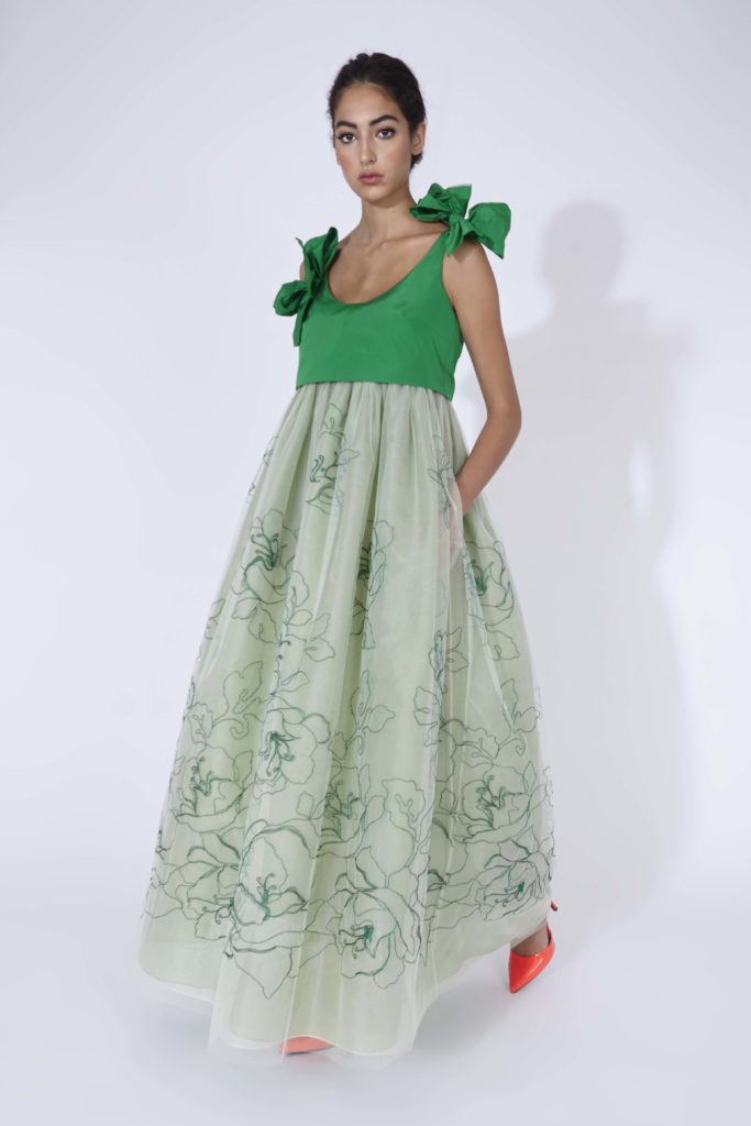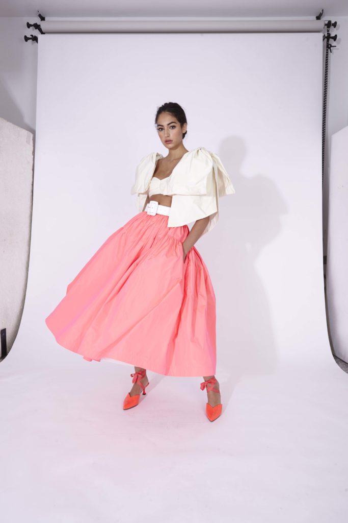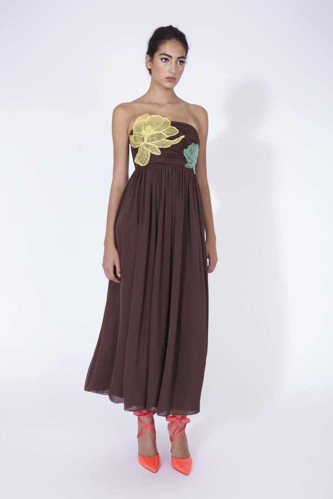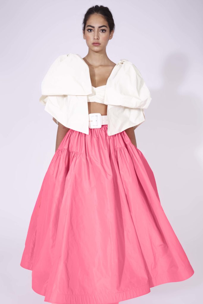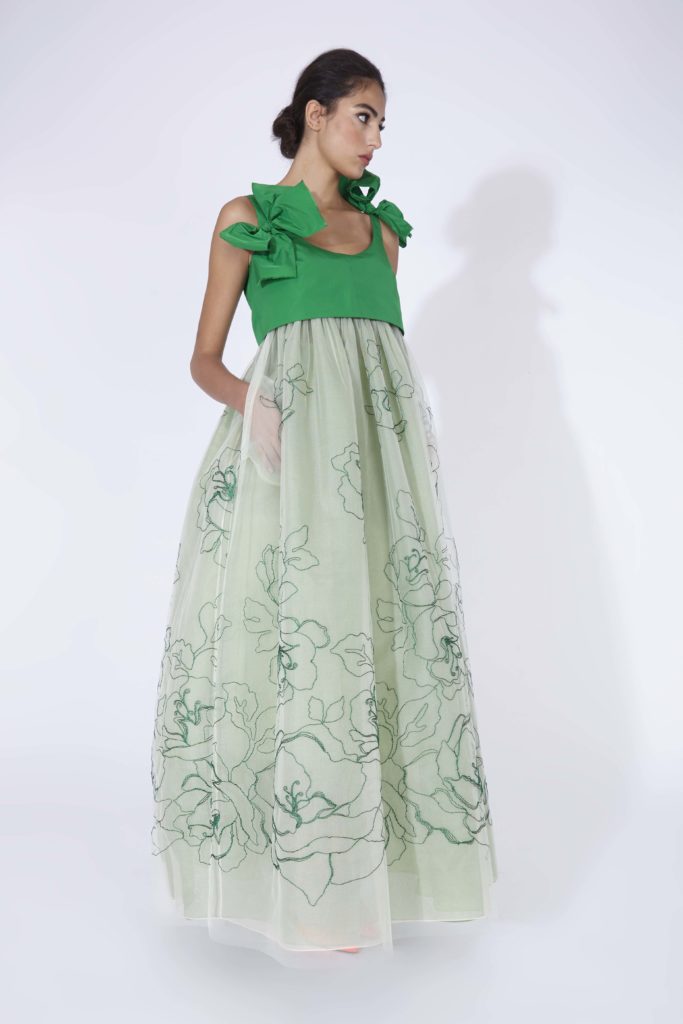 “Magna Magnolia” es una colección de siluetas estructuradas, donde el tejido marca la cadencia del patronaje. Dentro de este amplio repertorio se muestran vestidos armados en contraste con otros de líneas mas fluidas. El vestido largo y midi vuelve a ser protagonista en un ir y venir de alegorías a la señal de identidad de la marca en sus modelos más coctel y día.