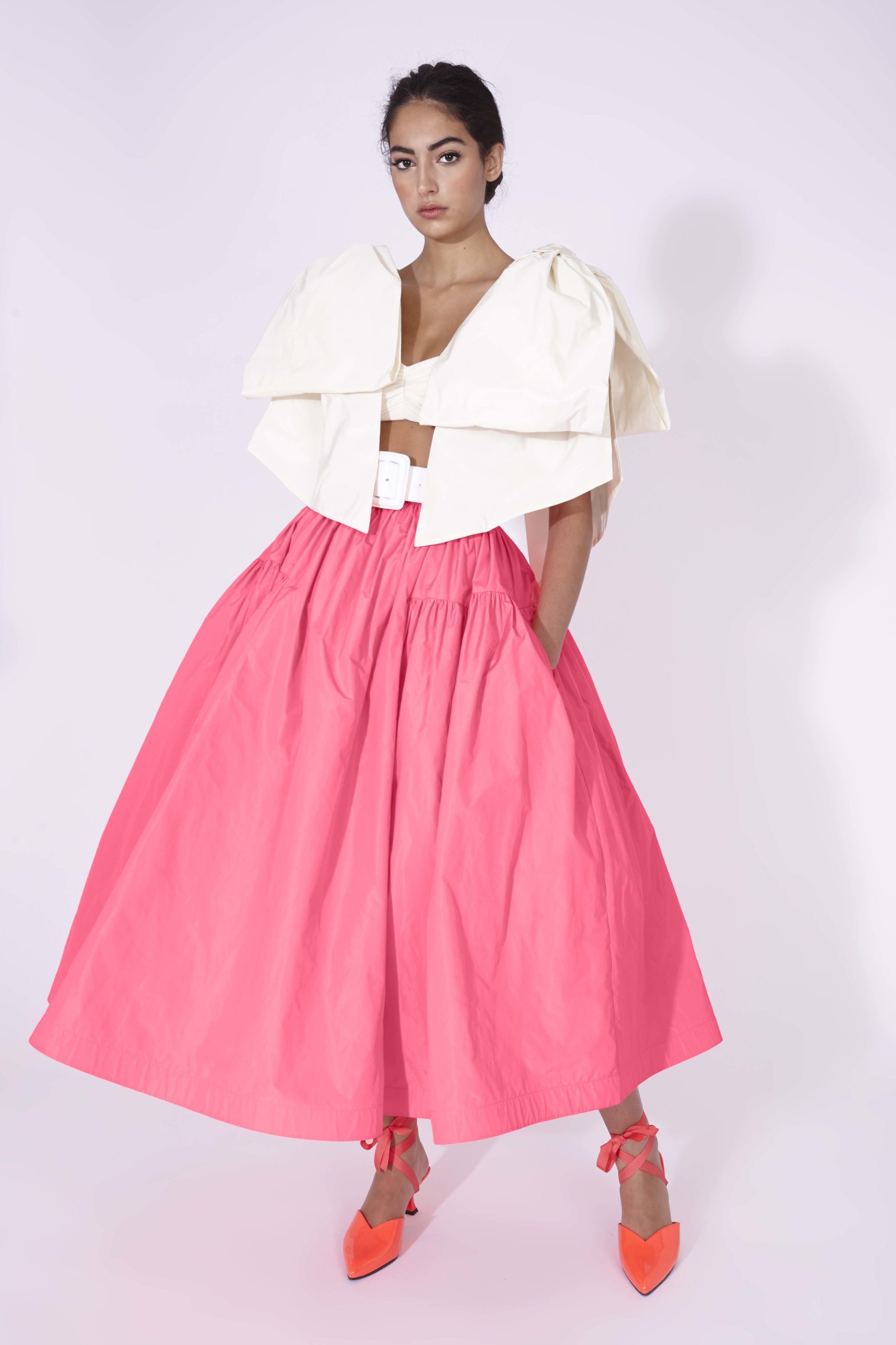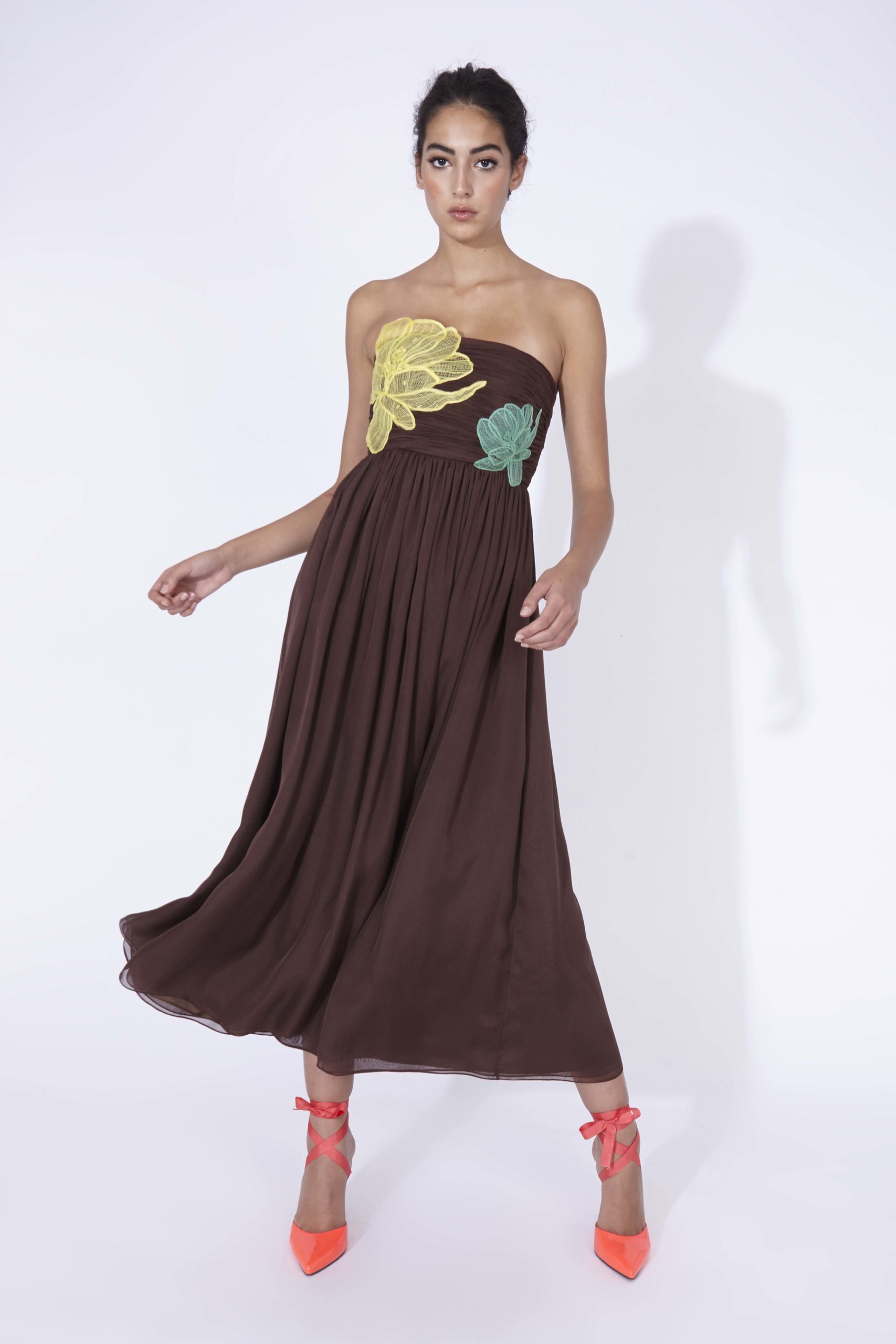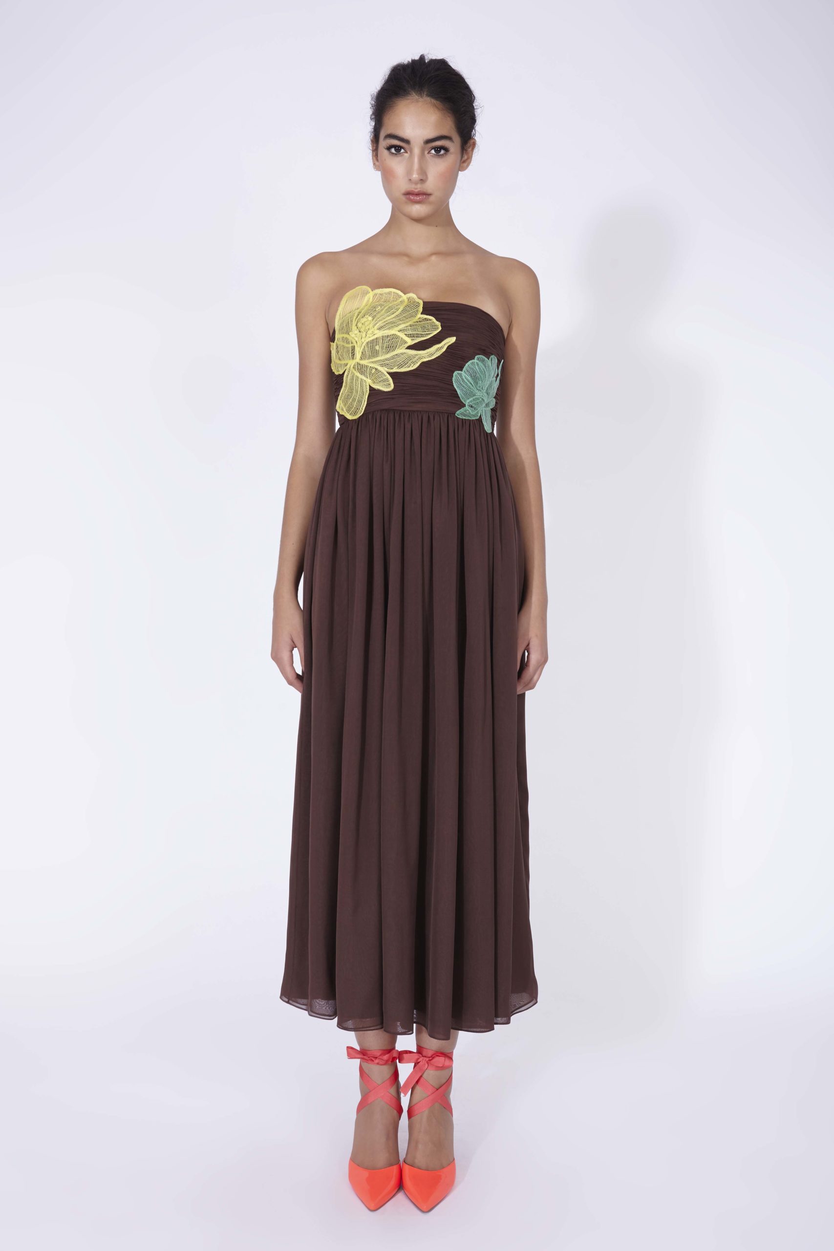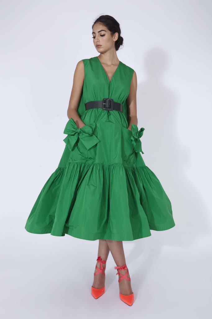“Magna Magnolia” es una colección de siluetas estructuradas, donde el tejido marca la cadencia del patronaje. Dentro de este amplio repertorio se muestran vestidos armados en contraste con otros de líneas mas fluidas. El vestido largo y midi vuelve a ser protagonista en un ir y venir de alegorías a la señal de identidad de la marca en sus modelos más coctel y día.