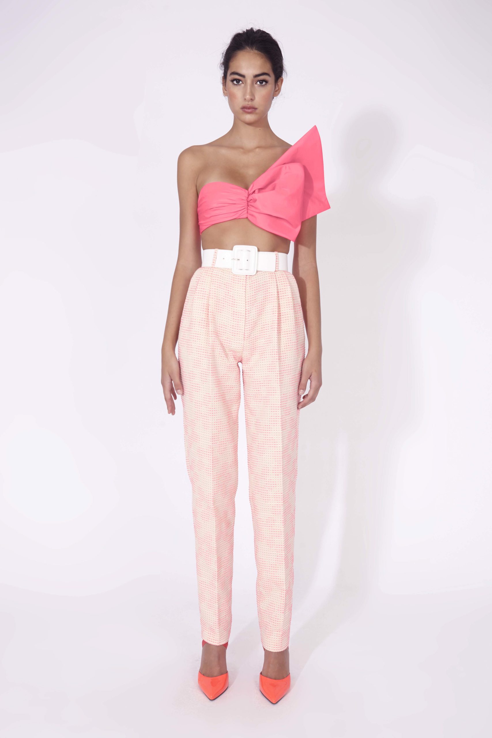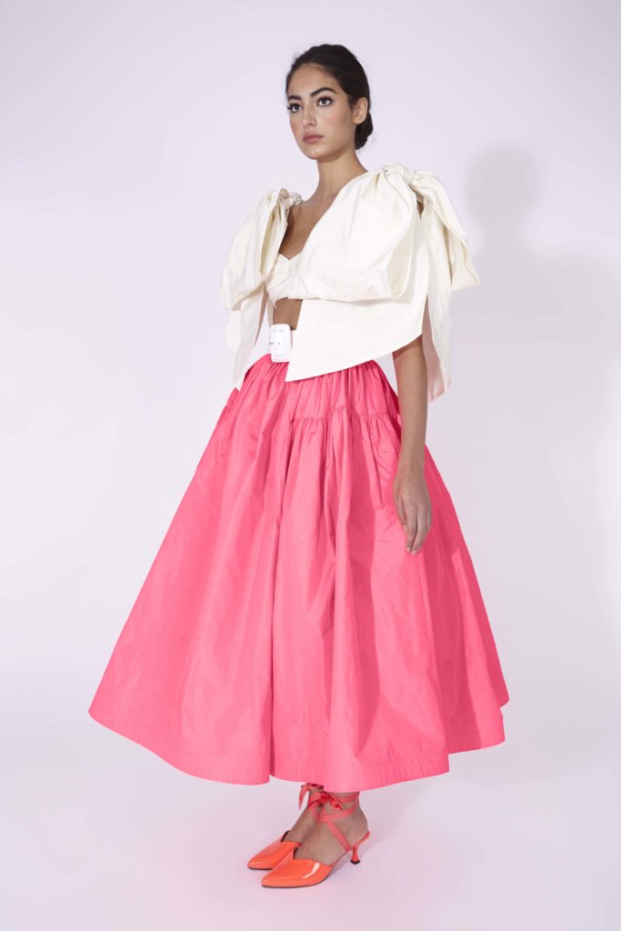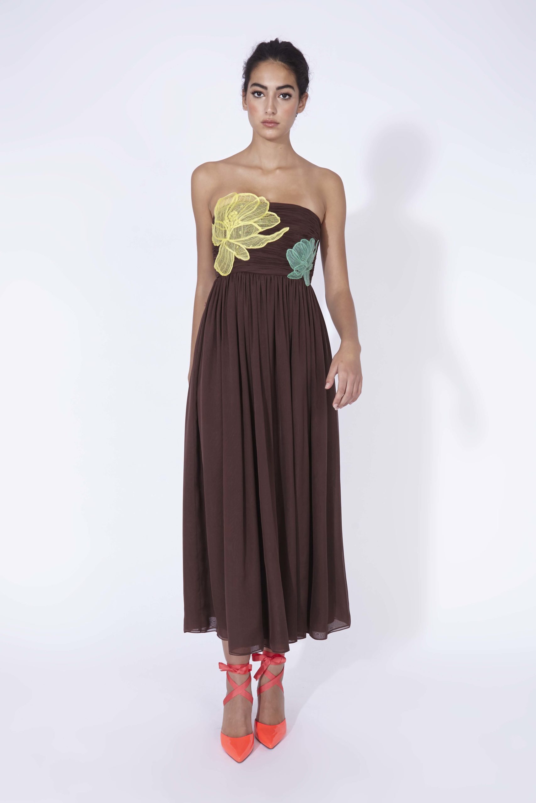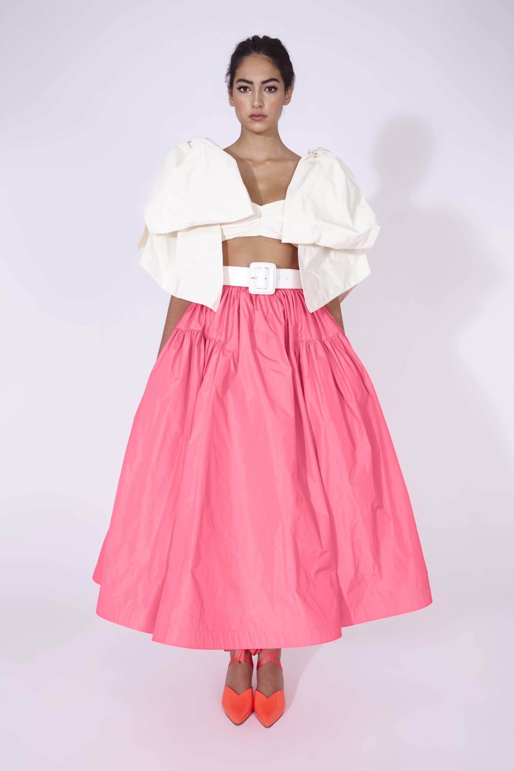 “Magna Magnolia” es una colección de siluetas estructuradas, donde el tejido marca la cadencia del patronaje. Dentro de este amplio repertorio se muestran vestidos armados en contraste con otros de líneas mas fluidas. El vestido largo y midi vuelve a ser protagonista en un ir y venir de alegorías a la señal de identidad de la marca en sus modelos más coctel y día.
