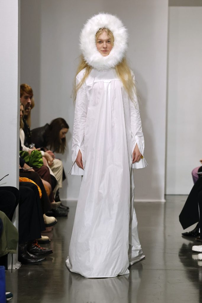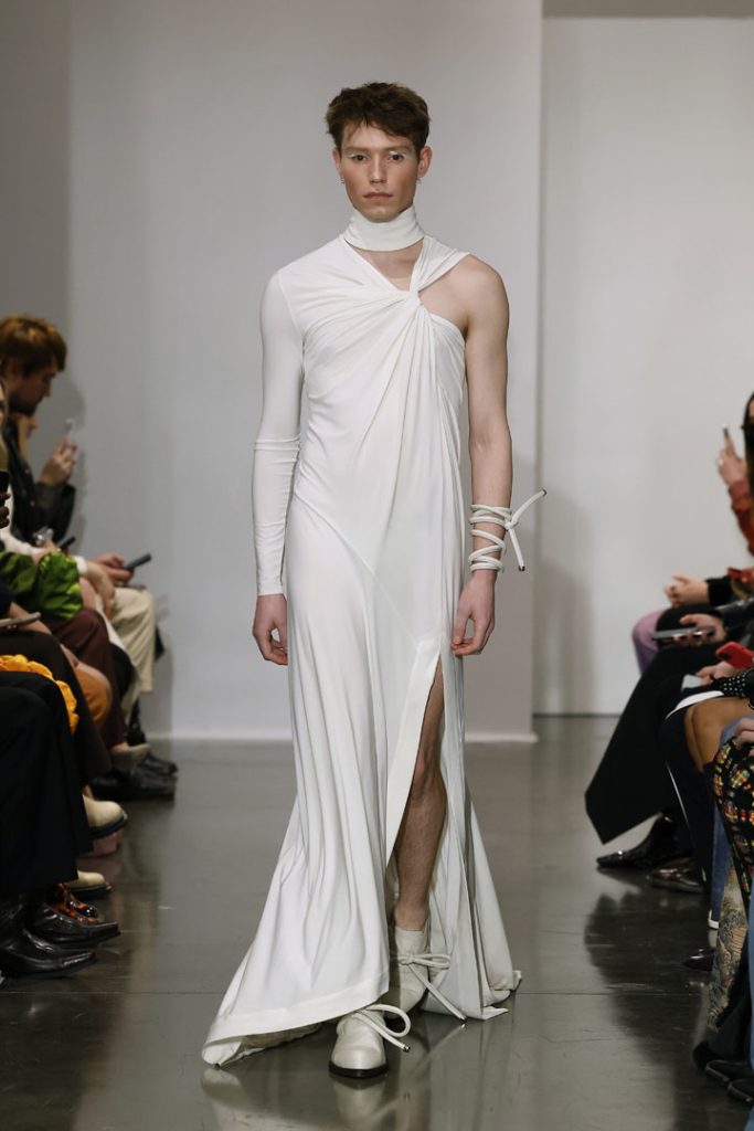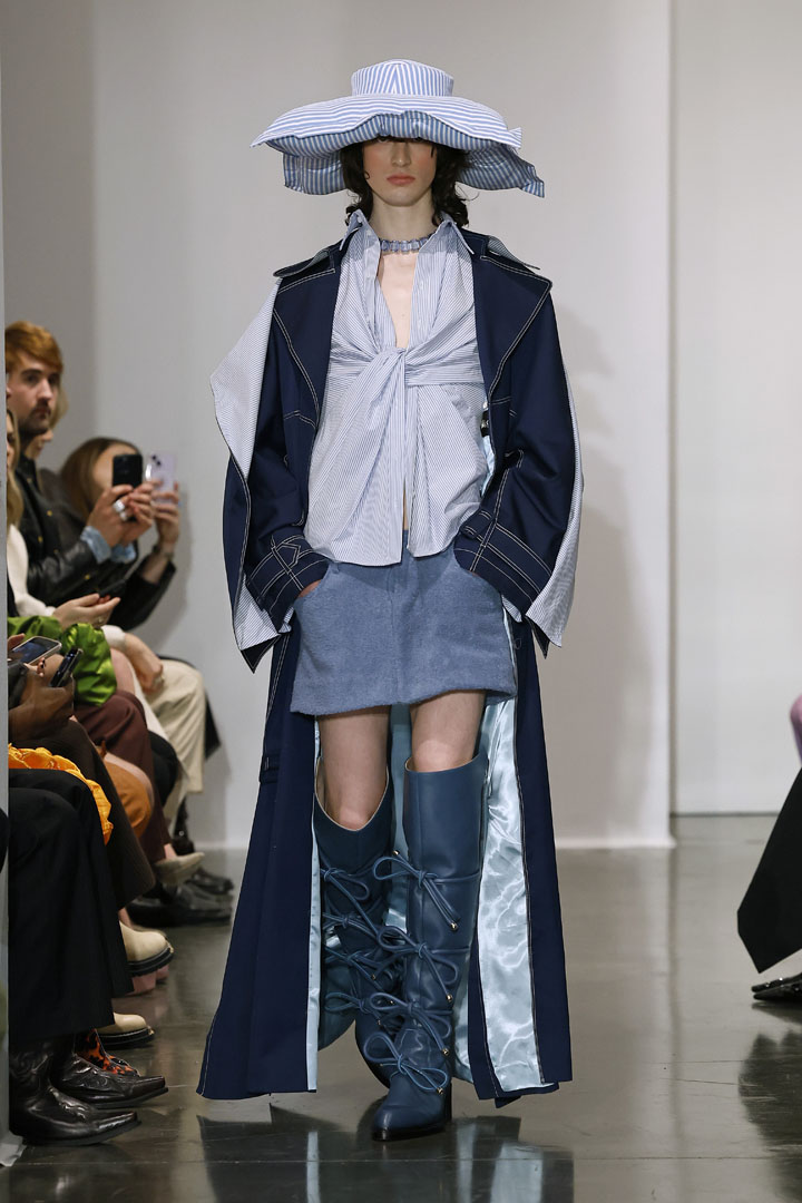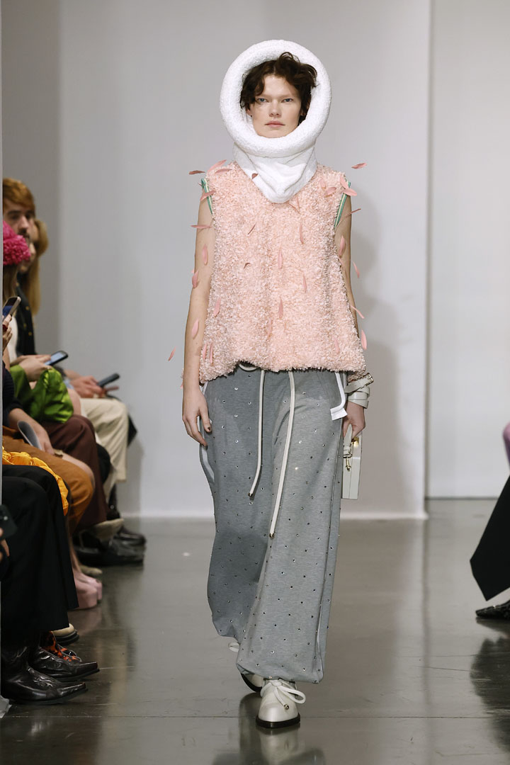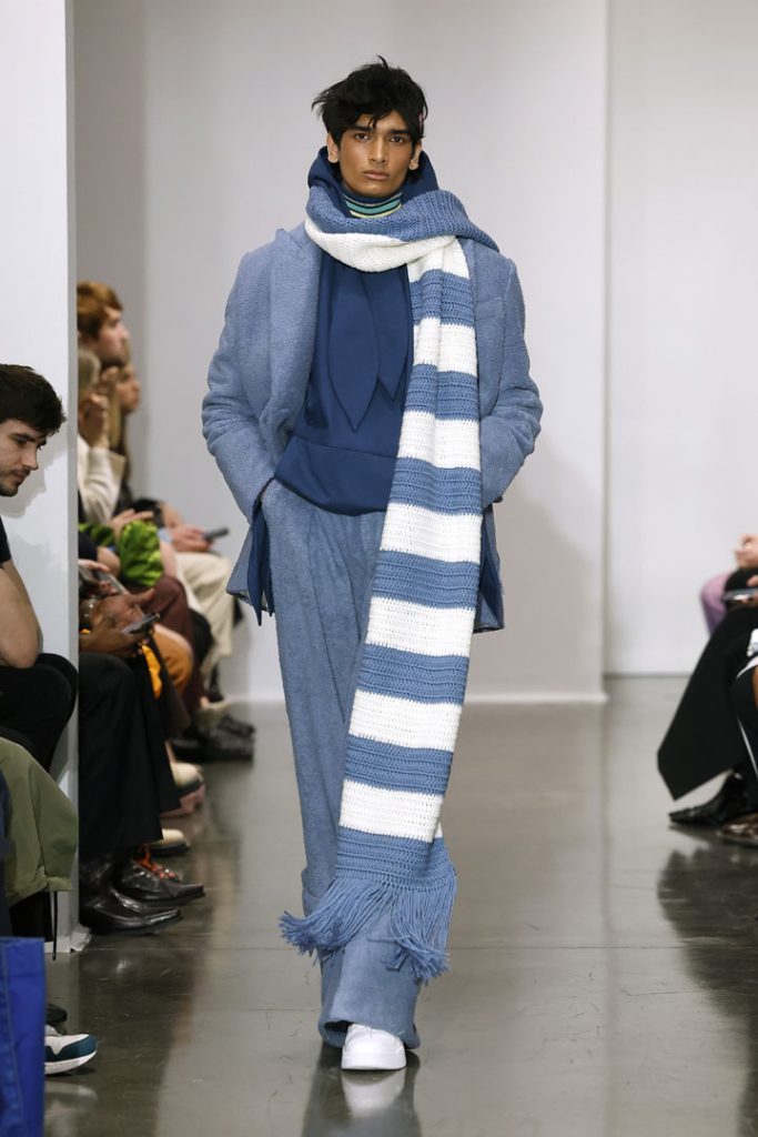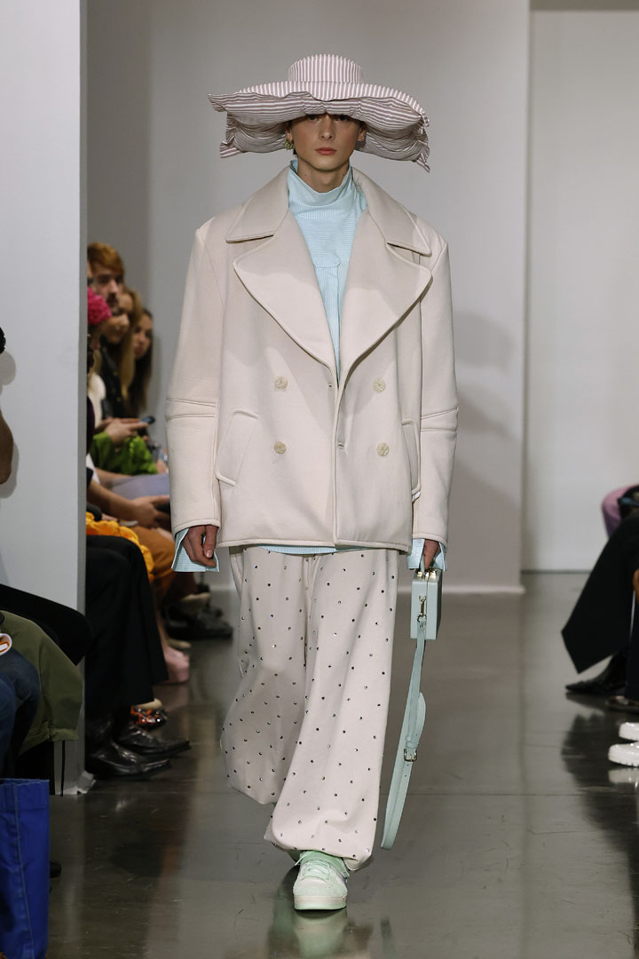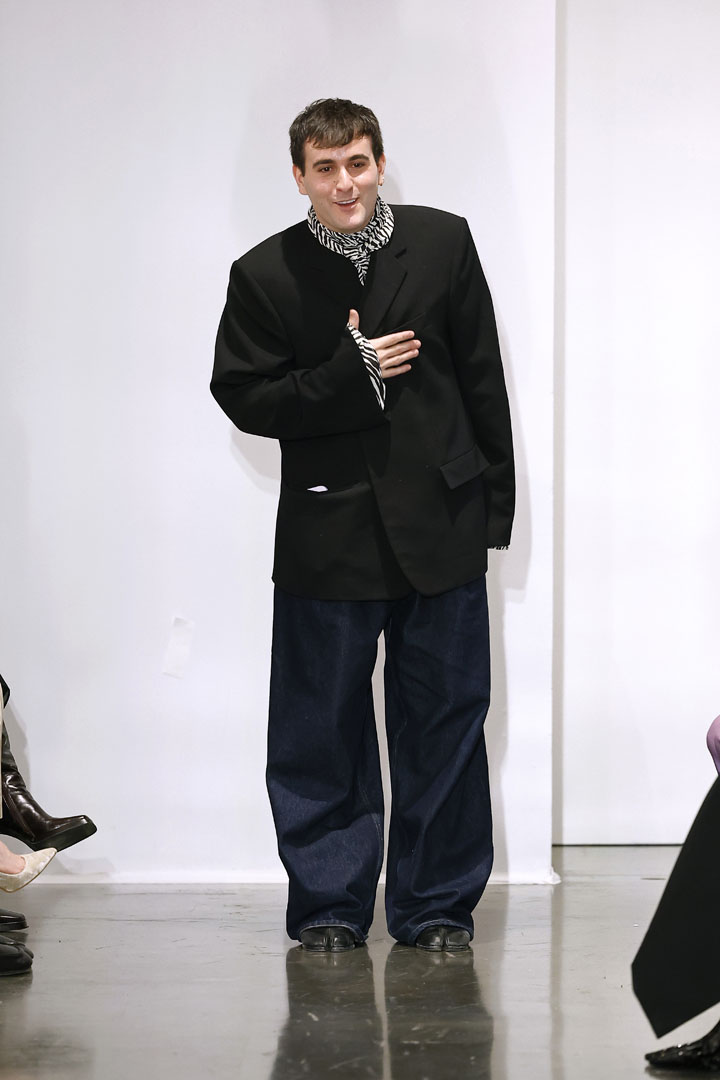 El dramatismo y la grandilocuencia estética que caracteriza el trabajo del diseñador, presente en voluminosas piezas en forma de abrigos que recuerdan a cocoons creados a partir del edredón de la casa de un muy joven creativo, conviven con piezas más sencillas que corresponden al ejercicio más street de la casa.