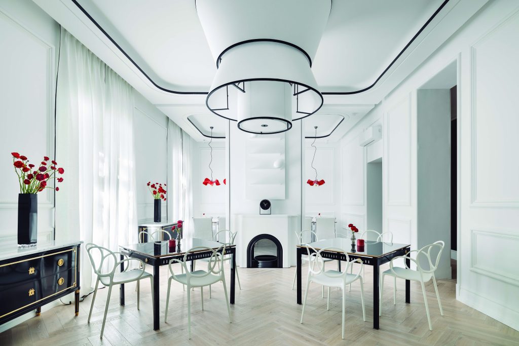 Valenciana, interiorista, nieta de Mariano García, una de las históricas familias vinculadas a la fabricación de muebles, que durante su época dorada exportaba un contenedor de género a Estados Unidos cada semana y amuebló series como ‘Hotel’, ‘Dinastía’ o ‘Falcon Crest’, se ha inspirado en la belleza y la magia parisina para crear un elegante espacio marcado por el equilibrio entre clasicismo y modernidad, con la combinación de materiales industriales y naturales con innovadoras propuestas tecnológicas. Un escenario único, en el cual el visitante de la Exposición tendrá oportunidad de degustar la variada propuesta gastronómica y de altísima calidad de Triciclo, el operador oficial del restaurante.