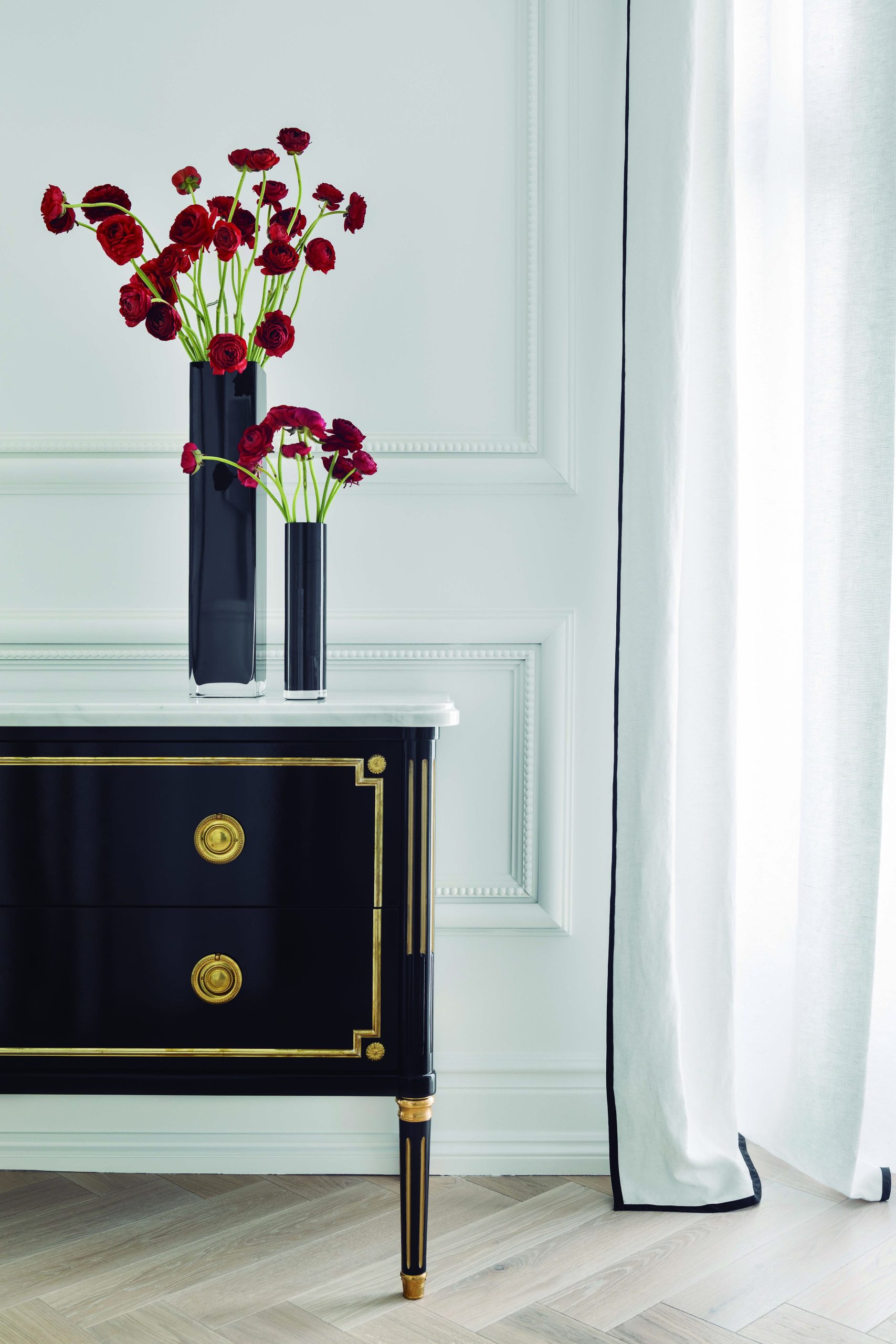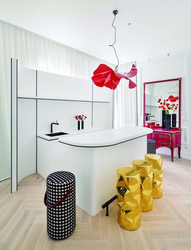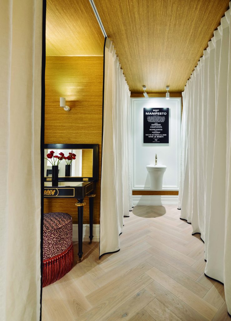 En el espacio también han colaborado las empresas Cinco Jotas, con su jamón de bellota 100% ibérico; el vino tinto 20 Aldeas 2018, Condado de Haza; JMM-José Martínez Medina, con el mobiliario; Hager, con los mecamismo; Jacob Delafon, con sanitarios y griferías; Loewe Perfumes, con velas y candelabros; Quooker, con el grifo; Montó, con sus pinturas; Fujitsu, con los equipos de aire acondicionado; Moissonnier, con las cómodas; Costa Este, con cortinas y tapicerías; Elitis, con revestimientos murales; Peralta Vidavi, con las lámparas de techo y apliques; Tarkett Floors, el suelo de madera; Zócalos de autor, con zócalos y molduras, y Blanco, con el fregadero.