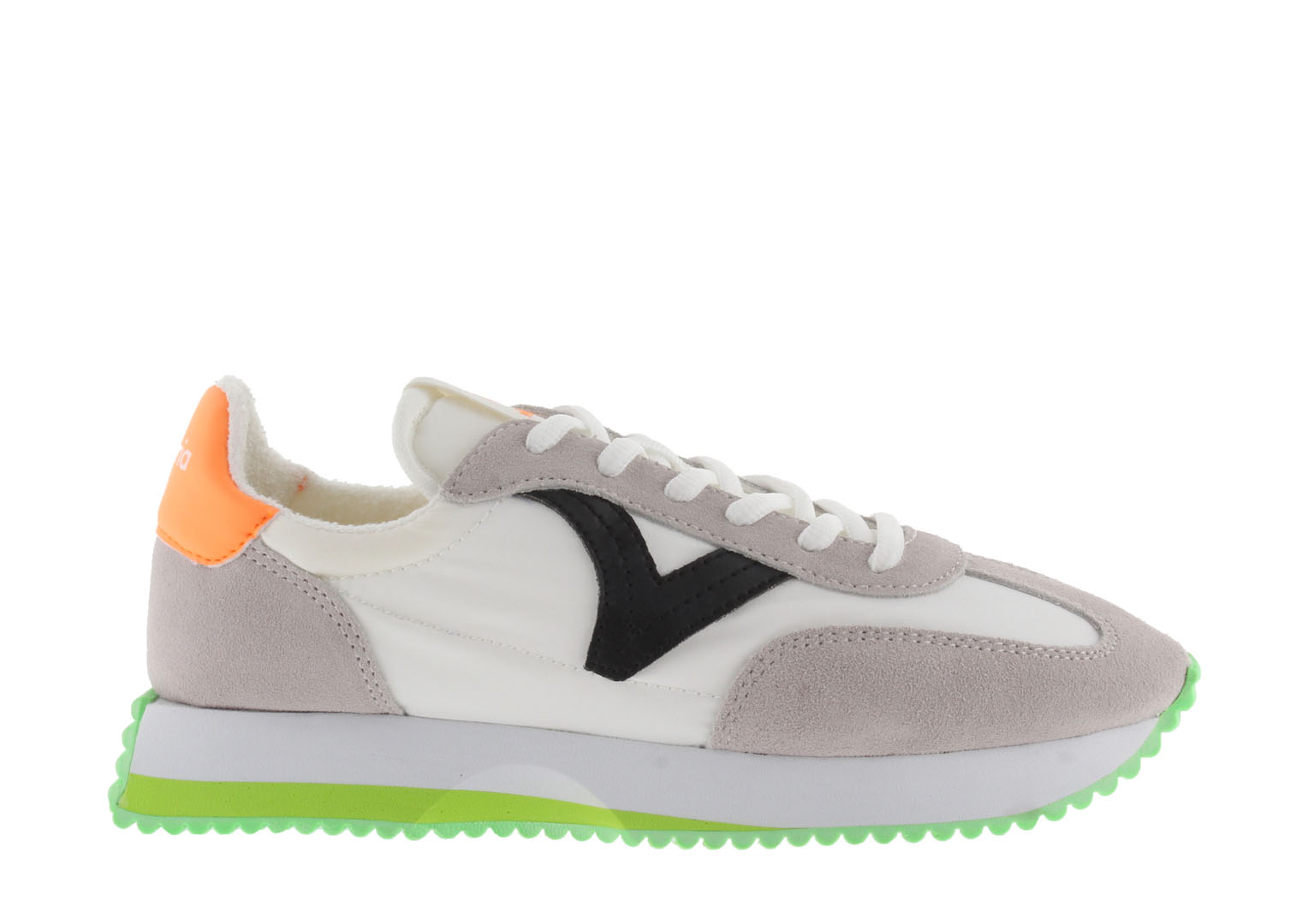 sneakers con un upper en blanco en contraste con piezas en tonos neón. Este modelo cuenta con la certificación LWG medalla de plata, que garantiza un uso de agua, energía y gestión de residuos responsable en el proceso de curtición. El modelo Berlín es una excelente opción para aquellos amantes de las zapatillas clásicas, pero que quieren dar un toque más divertido a sus looks.