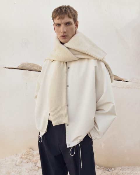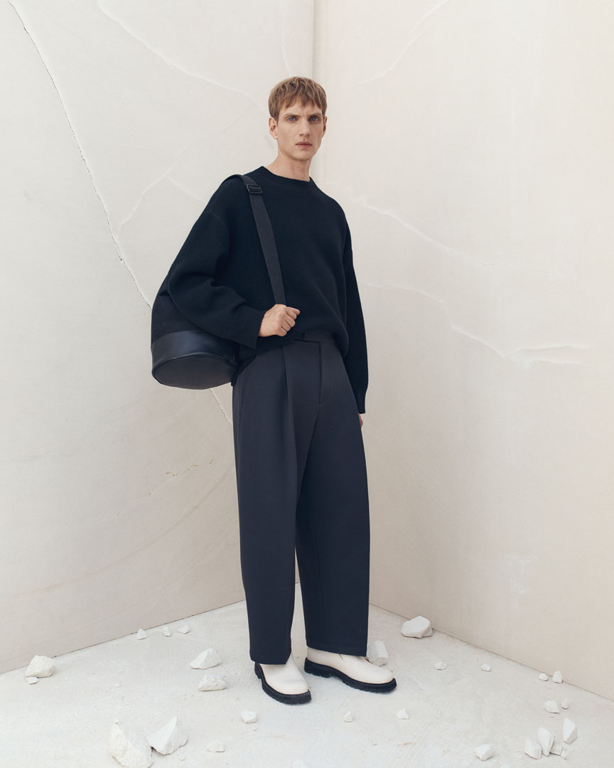 De las propuestas para la casa, Nick Wakeman explica: «Esta es otra área apasionante a la que nos invitóaventurarnos Zara. La oferta incluye una lámpara de mármol con pantalla de papel, una manta de la misma lana certificada RWS que la de la colección de hombre y mujer, y objetos modulares para múltiples usos. Quería que estas piezas realzaran nuestros hogares, nuestros espacios. Studio Nicholson siempre ha tenido un ADN de rebeldía subyacente que se posiciona en contra de las tendencias pasajeras y las tradiciones aceptadas. Así que, en vez de utilizar un término formal como muebles, yo los veo como complementos diseñados para aportar nueva textura e interés a una estancia, del mismo modo que utilizamos capas en el armario modular de una temporada a otra. El hogar es nuestro espacio privado: ¡es el único lugar donde se nos permite imponer nuestras propias reglas!».